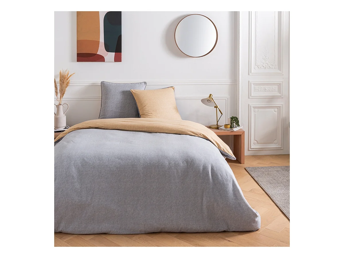 Parure de lit 2 personnes en flanelle coton 57 fils unie multico 240x220cm