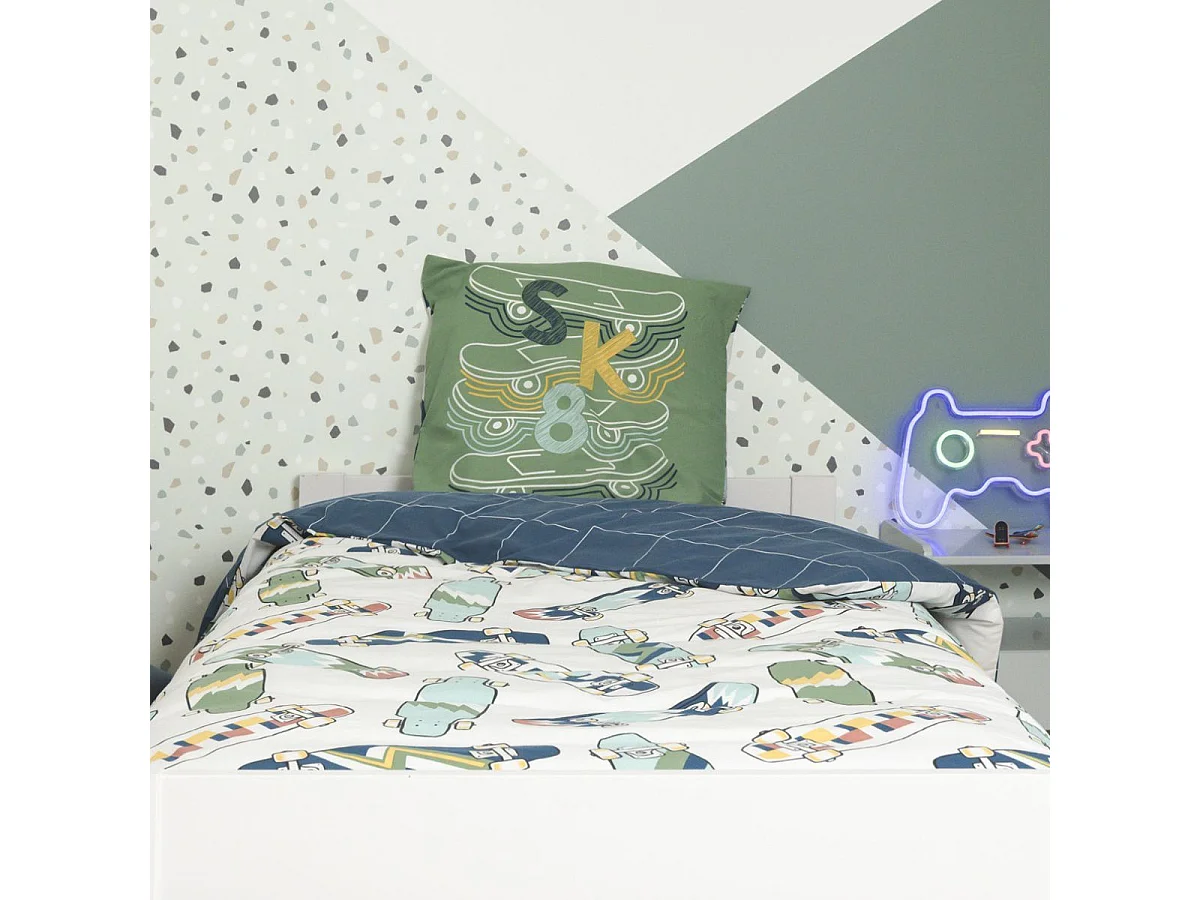 Parure de Lit Imprimé Floral Housse de Couette 140x200cm + 1 Taie d'Oreiller 63x63cm coton motif stakeboard - STREET