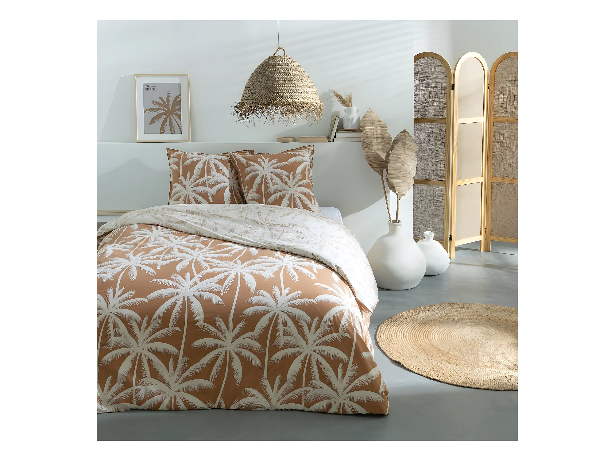 Parure de lit 2 personnes en coton 57 fils imprimé camel 240x220cm
