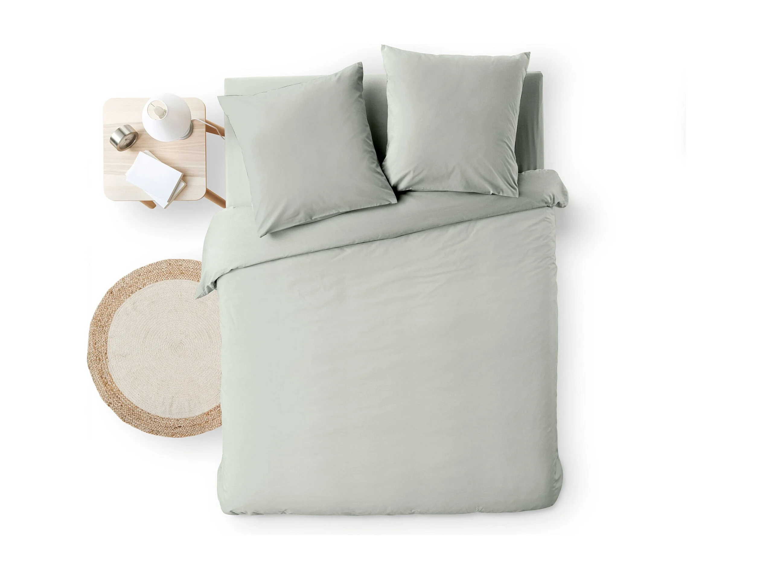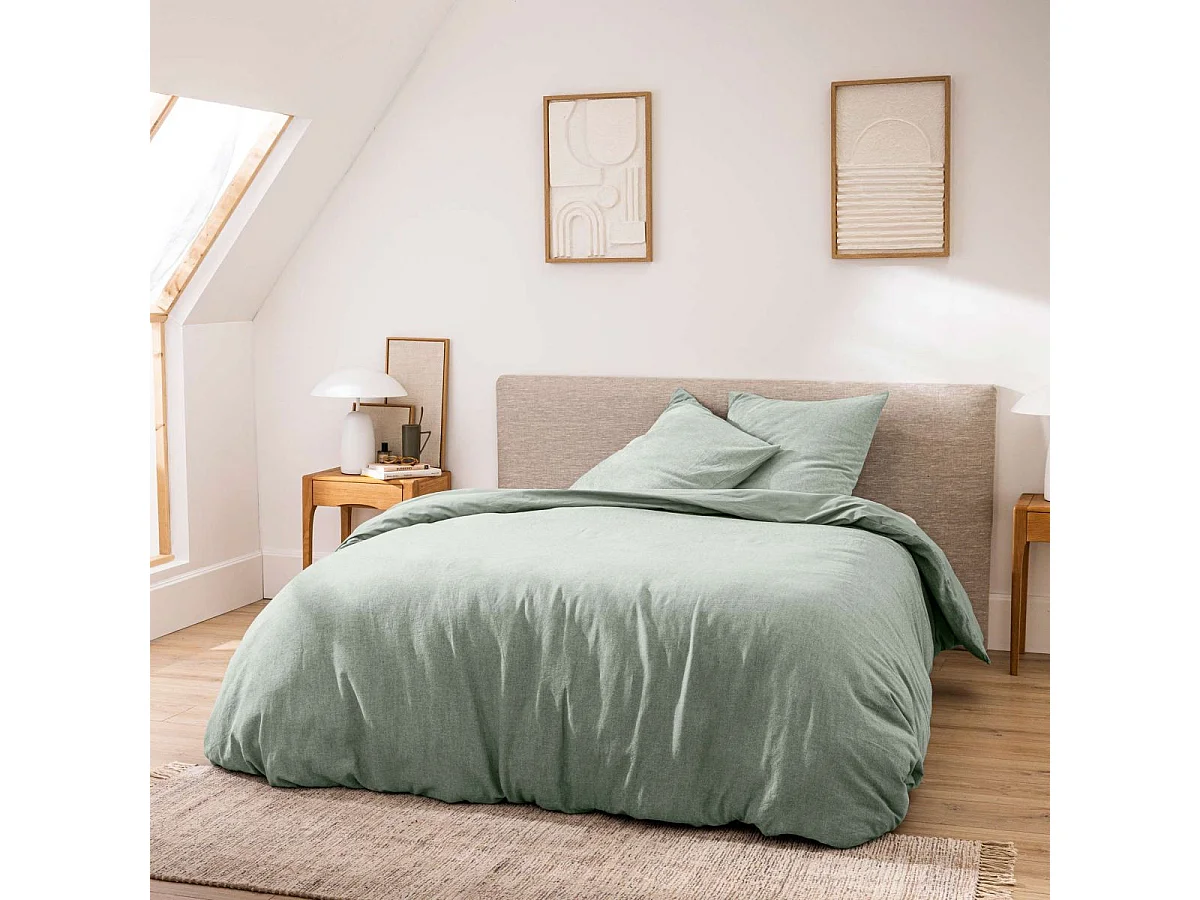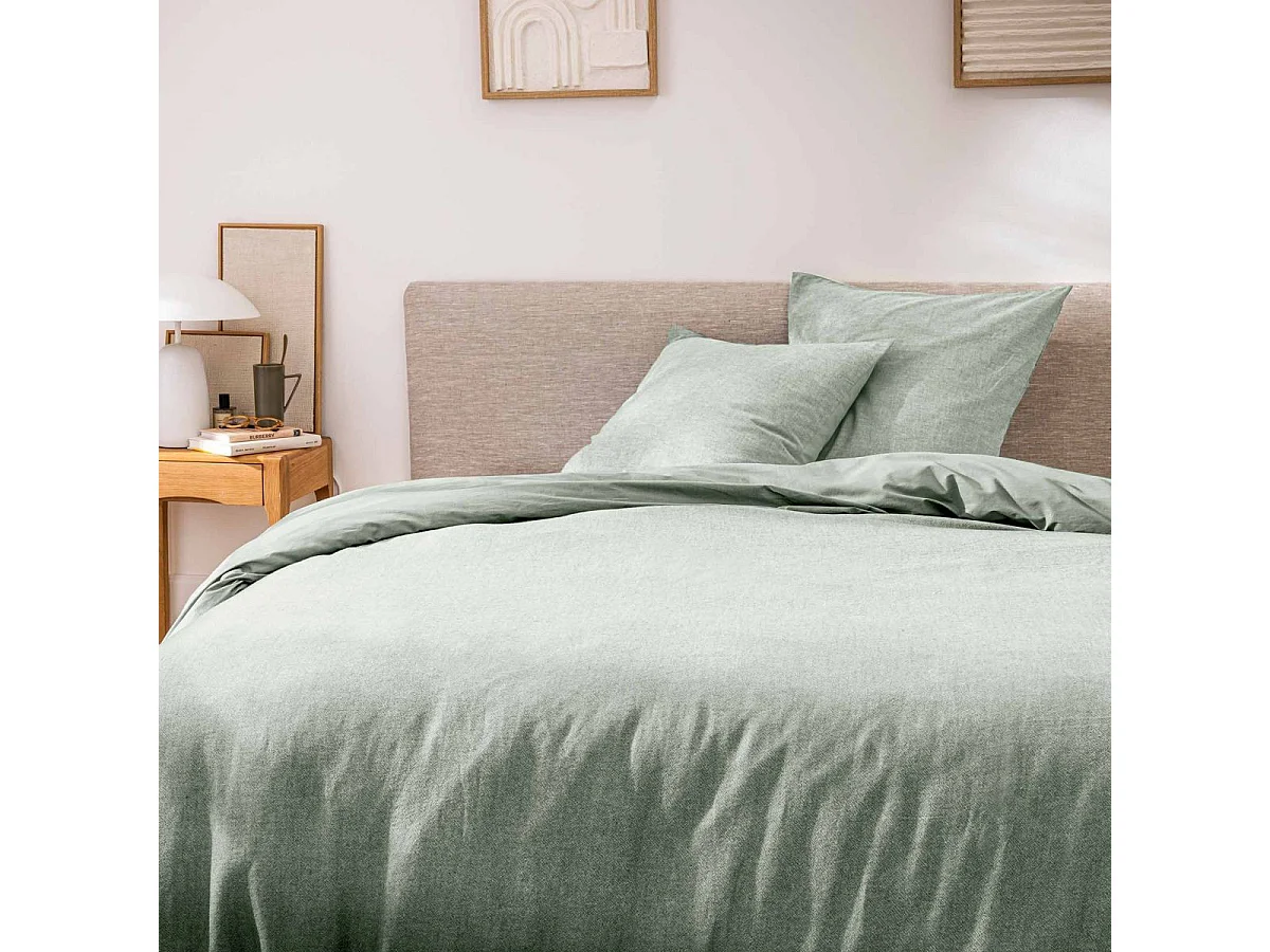 Parure de lit 260x240 cm et taie 50x70 cm percale MANOIR vert Jasmin