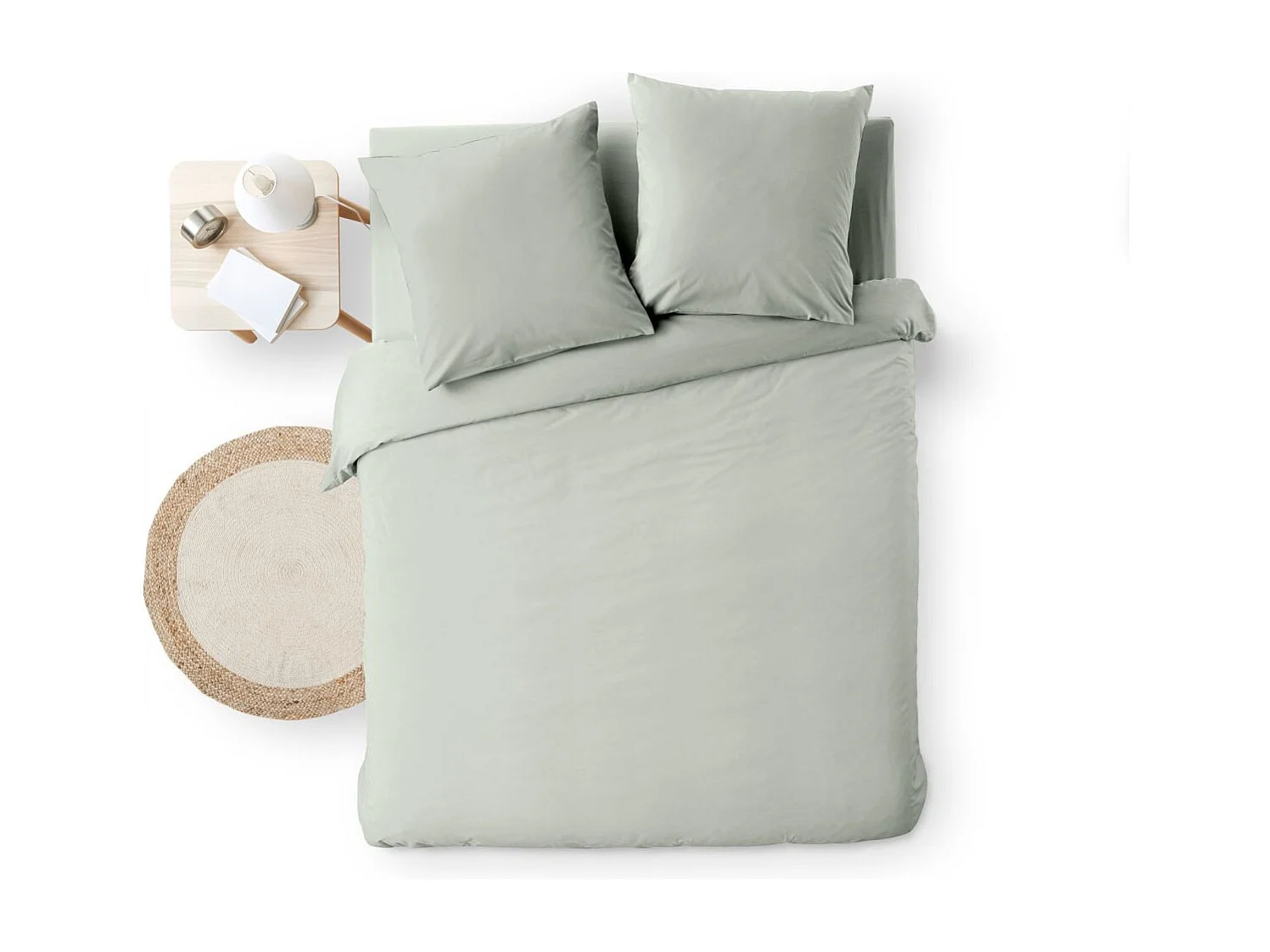 Parure de lit 260x240 cm et taie 65x65 cm percale MANOIR vert Jasmin