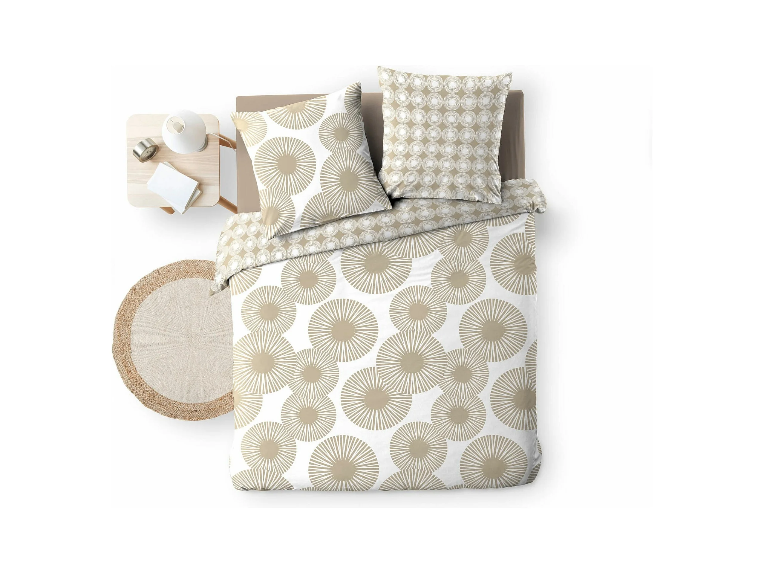 Parure de lit Mawira - 2 personnes - 260 x 240 cm - 100% coton - Beige Motif Ethnique - TODAY
