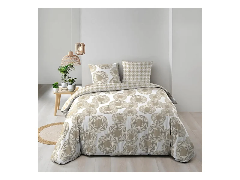 Housse de couette + taie(s) oreiller "Delda" 100% coton imprimé.