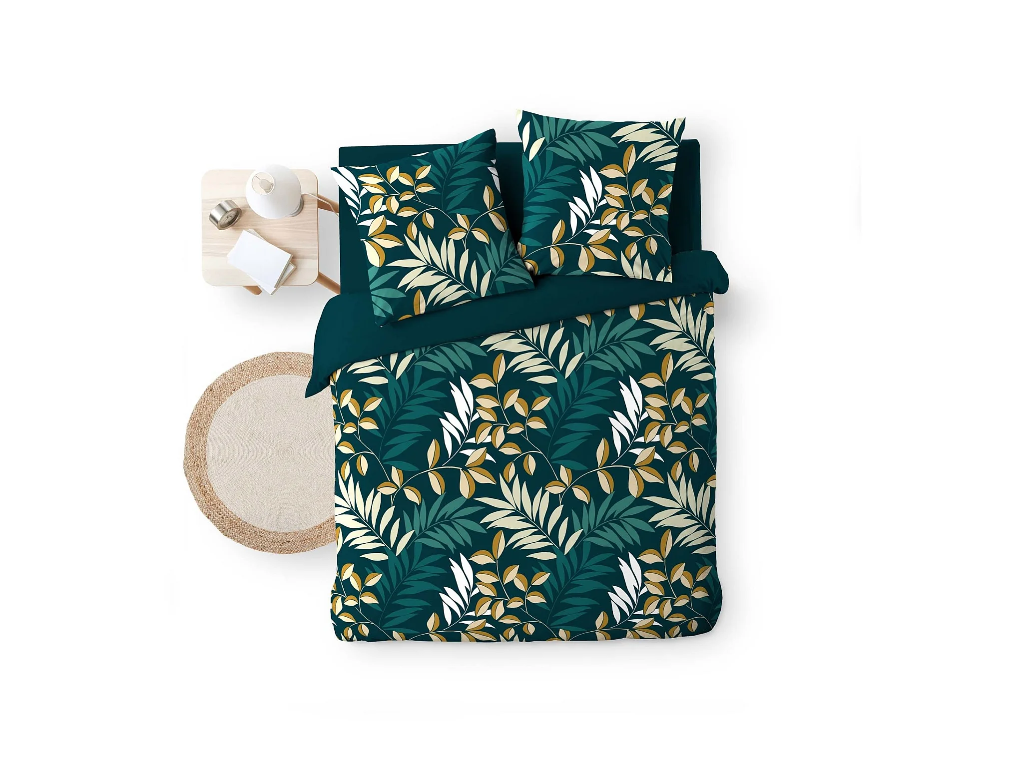 Parure de lit Mawira - 2 personnes - 260 x 240 cm - 100% coton - Bleu marine Motif Floral - TODAY