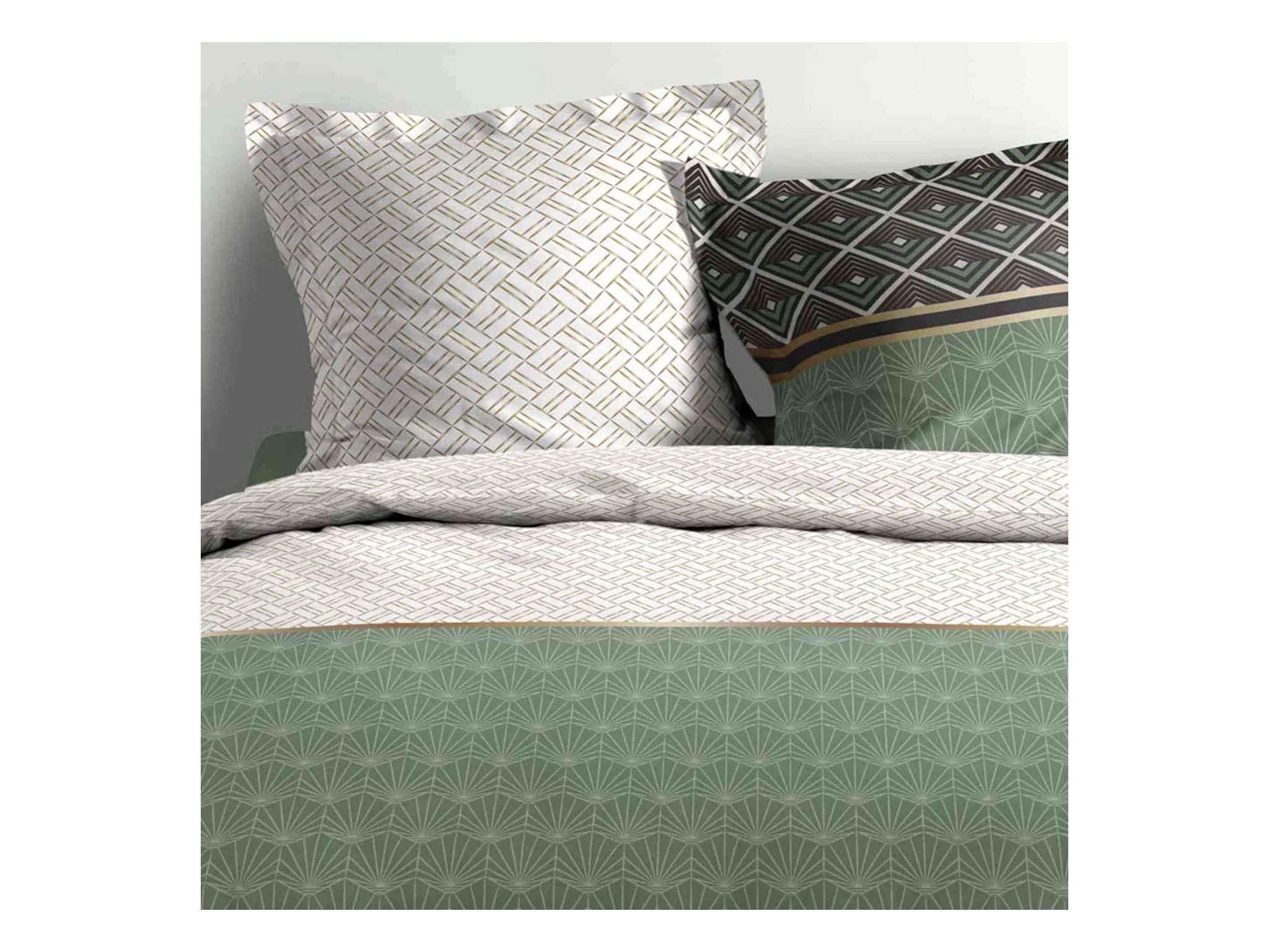 Parure de lit percale Alex kaki 240x220 cm - Tradilinge