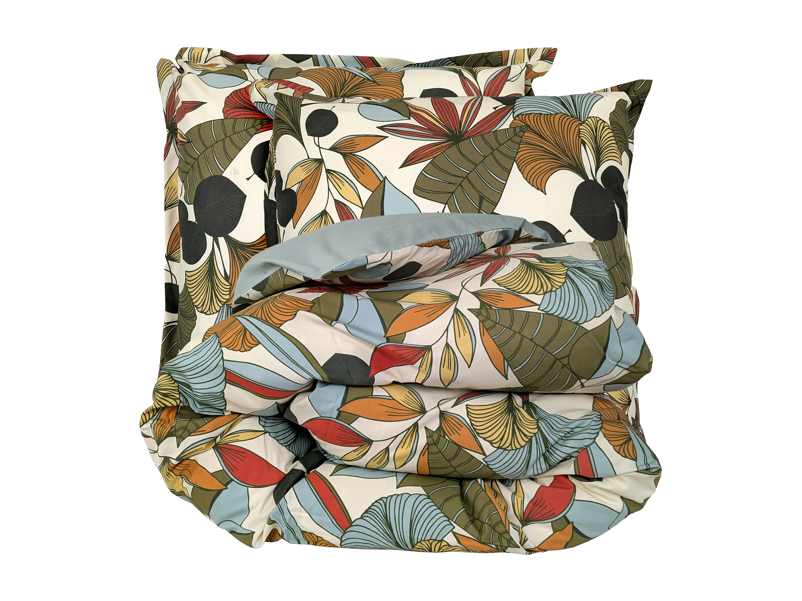 Parure de lit percale de coton 300x240 cm CASCADE vert Sauge 3 pièces