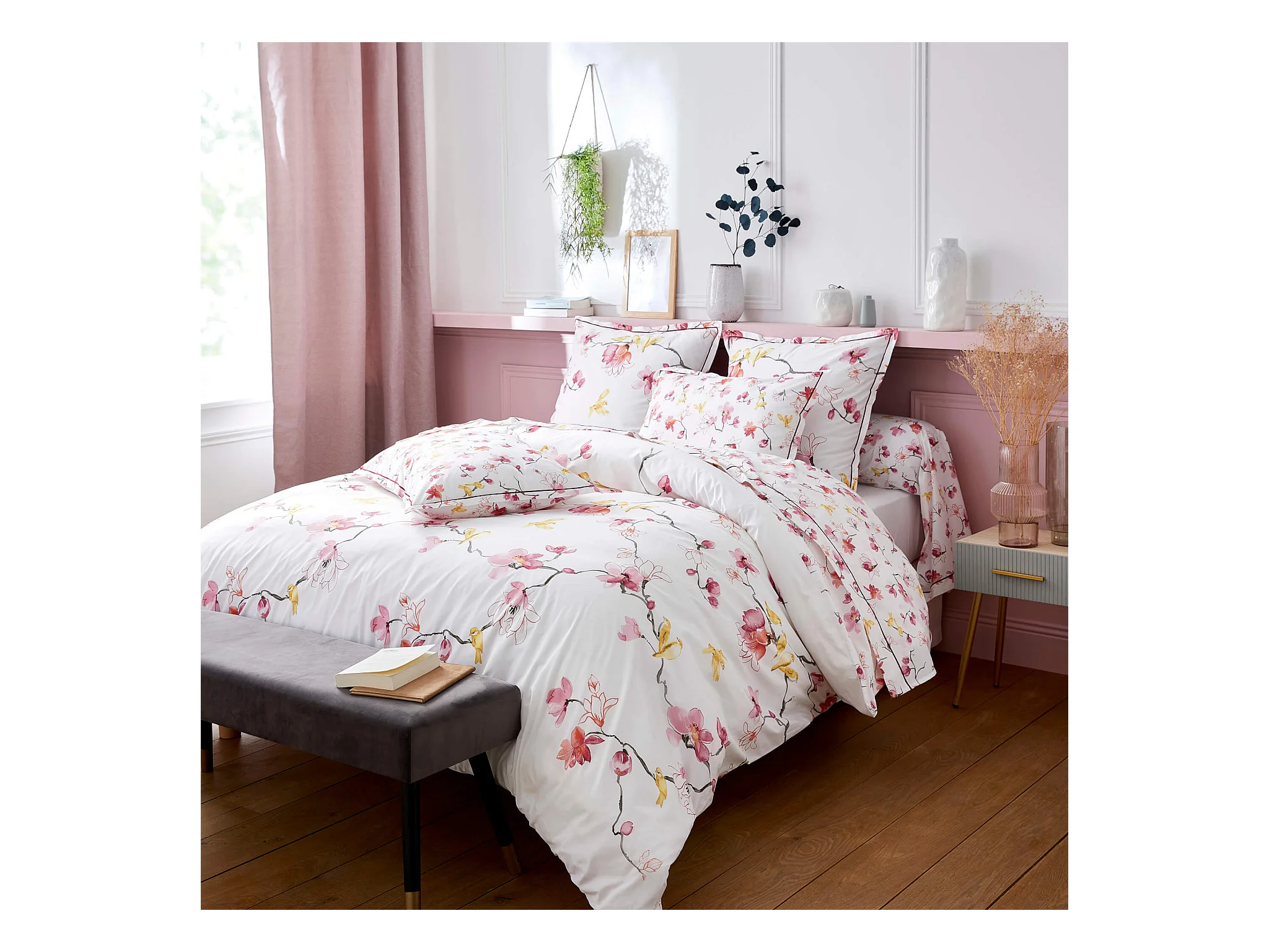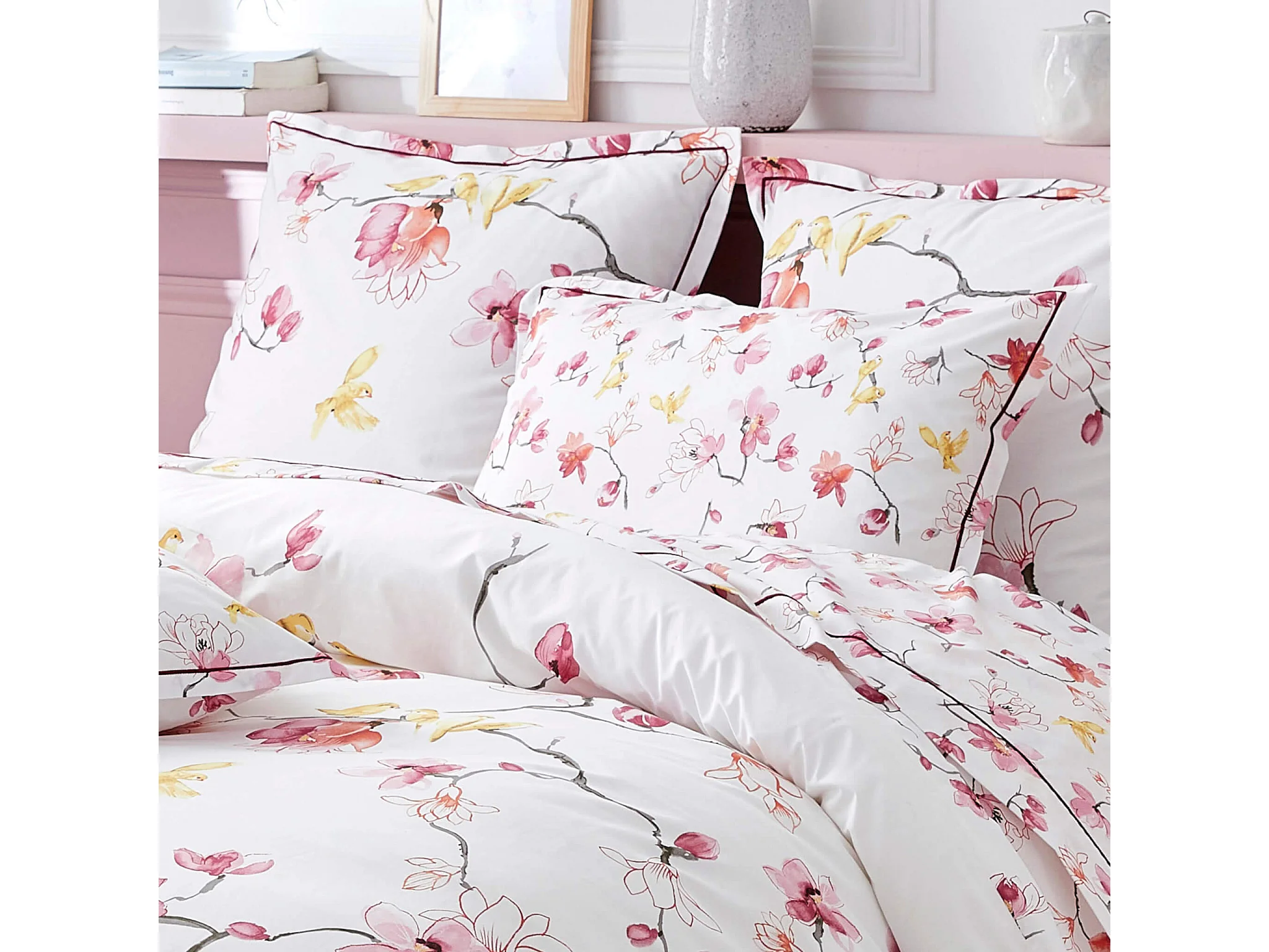 Parure de lit percale Elisa rose 260x240 cm - Tradilinge
