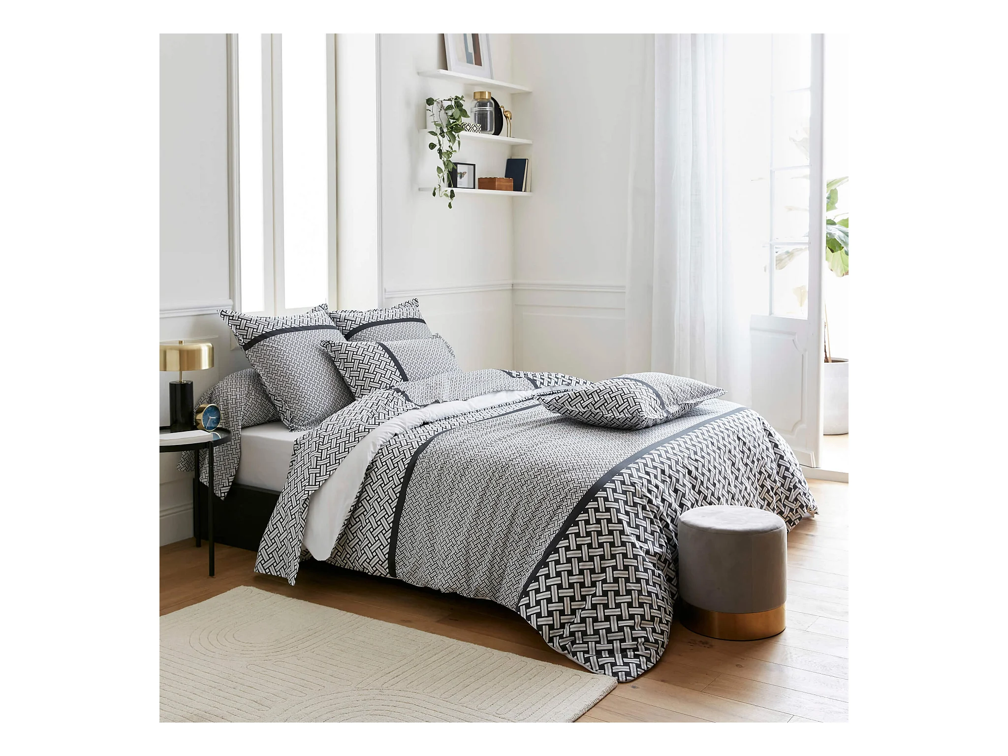 Parure de lit percale Riviera réglisse 240x220 cm - Tradilinge