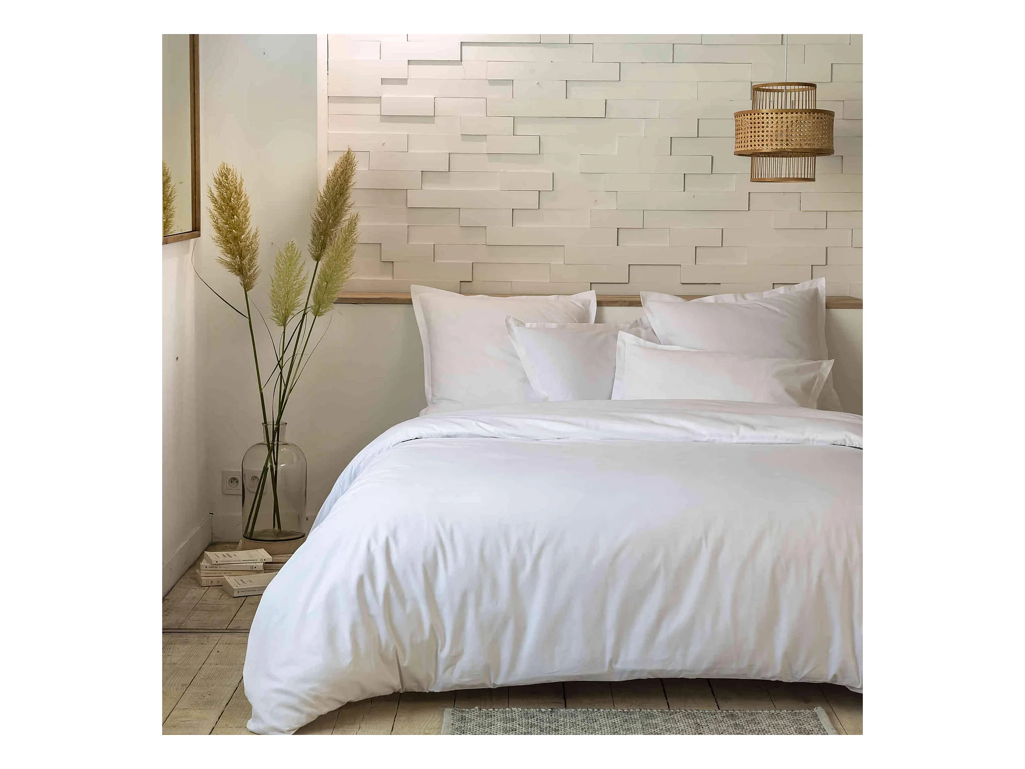 Parure de lit unie 2 personnes percale de coton : Housse 240x260cm+ 2 taie 65x65cm- Blanc