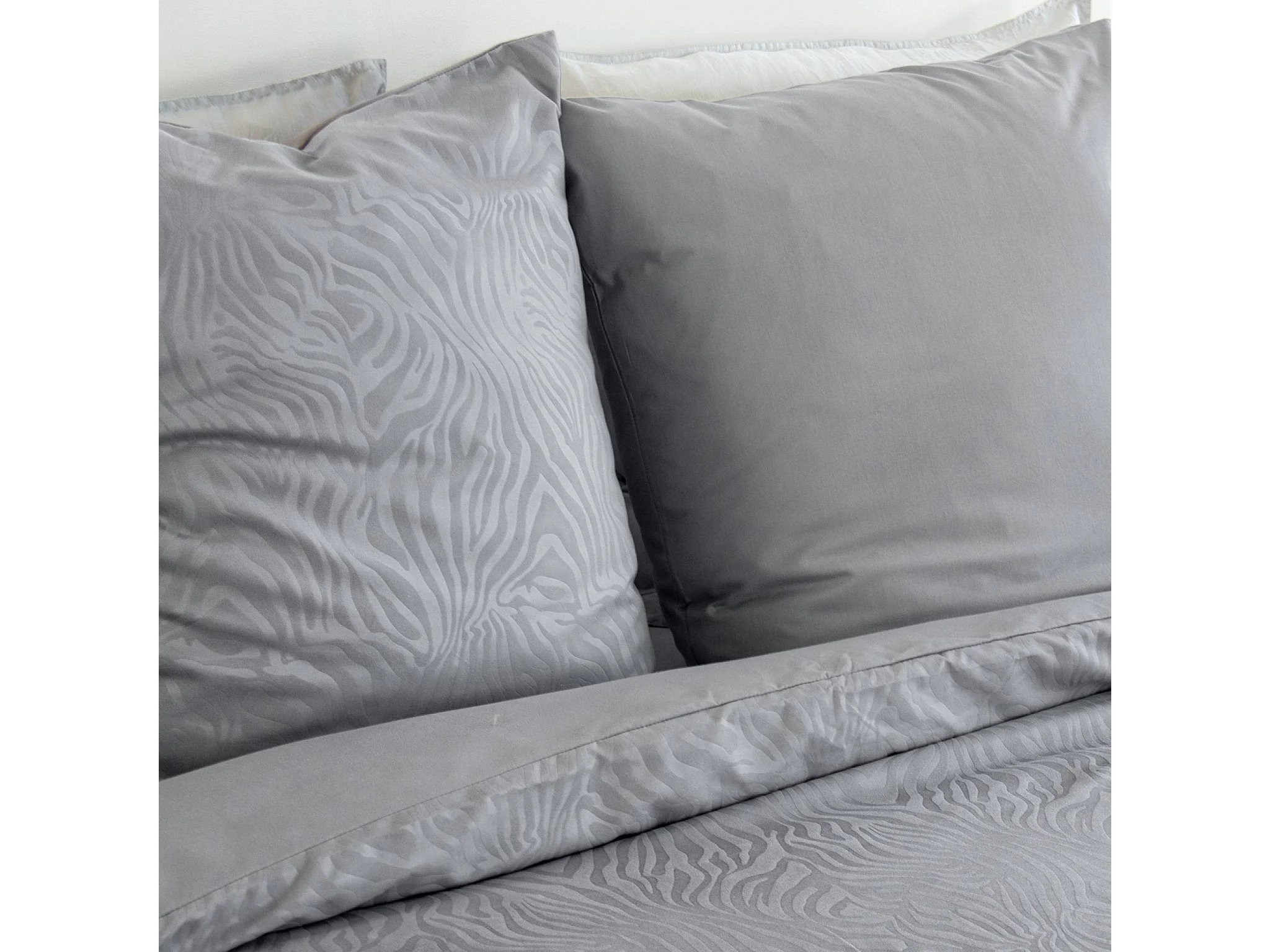 Parure de lit polyester réversible imprimé zèbre 2 places gris 260x240cm - Ondula