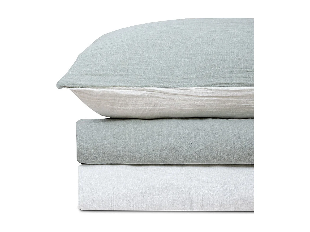 Parure de lit réversible 160 cm gaze de coton vert sauge/écru