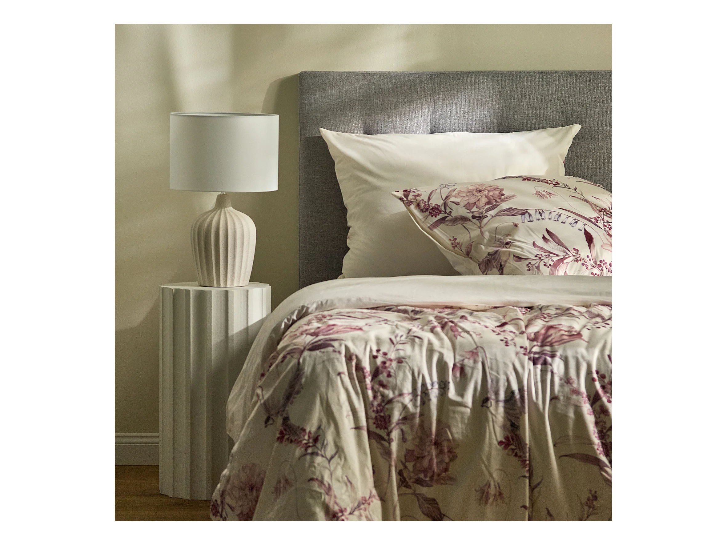Parure de lit Amberbloom écru satin de coton 160x200