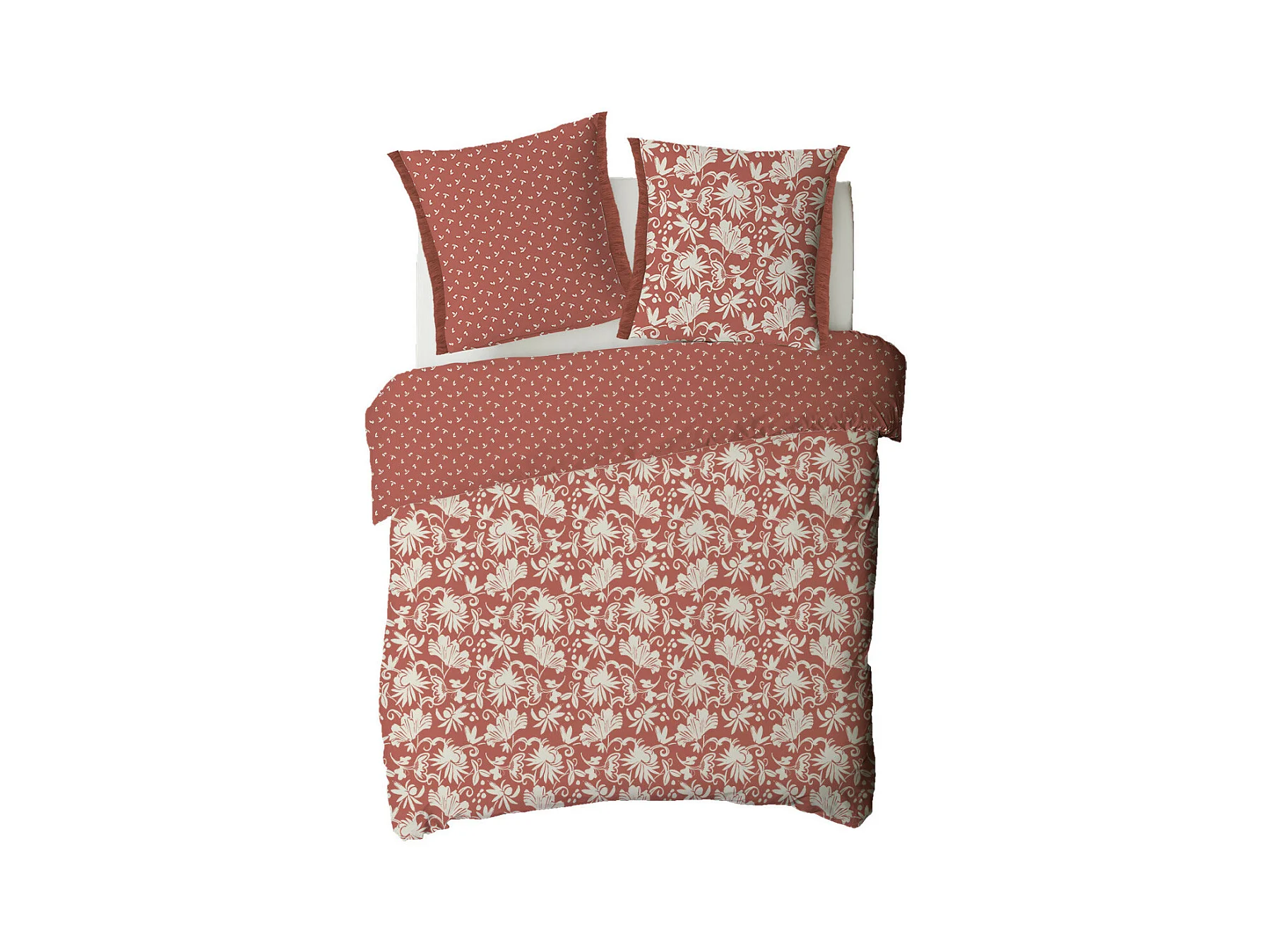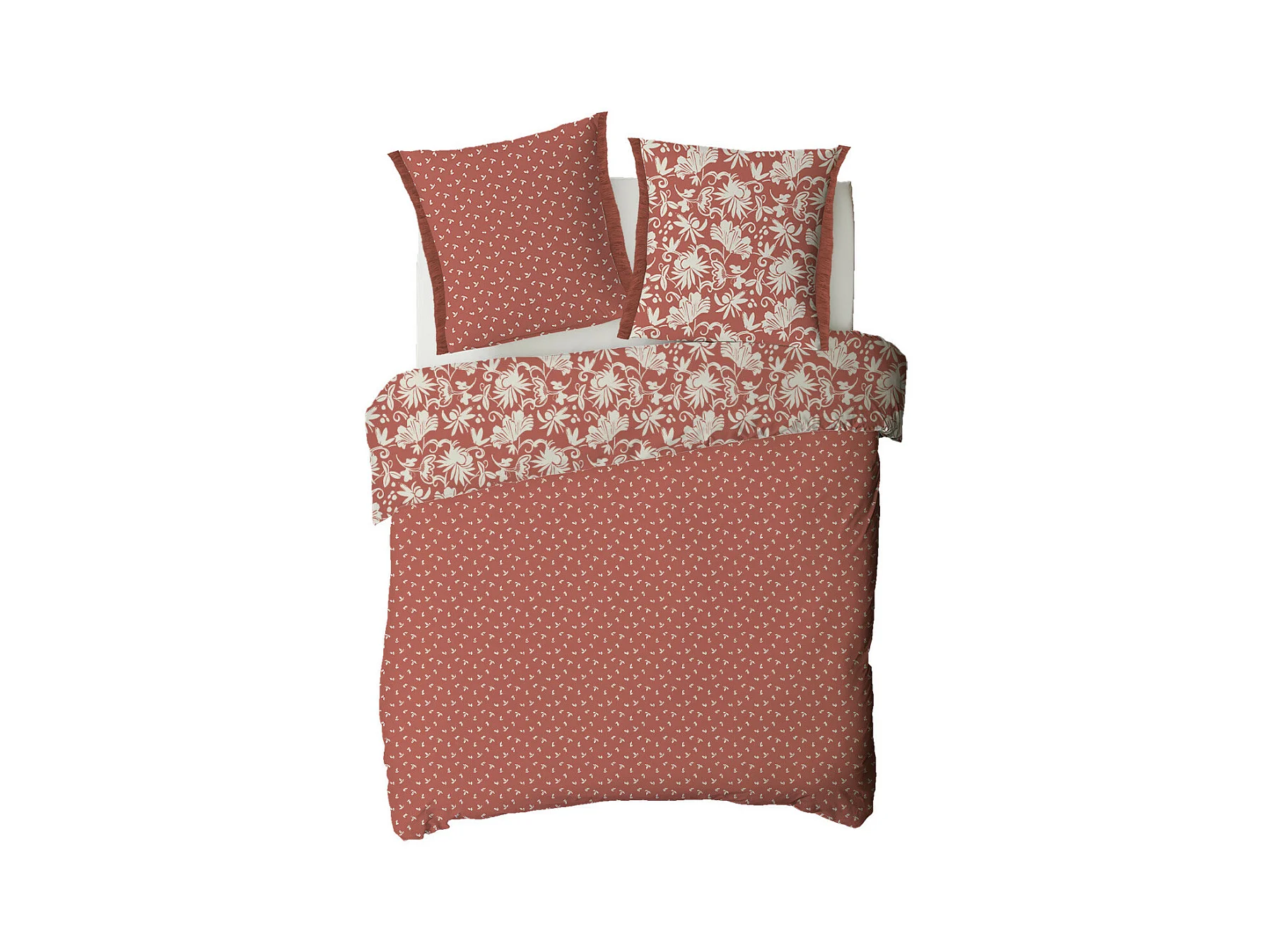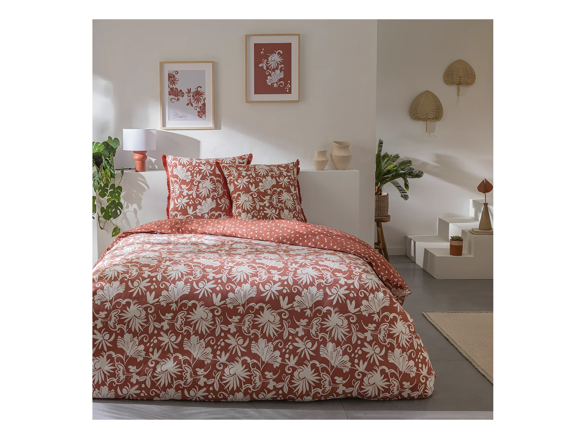Parure de lit en microfibre lavée. terracotta. 240 x 220cm pour lit 2 places avec 1 housse de couette et 2 taies d'oreillers