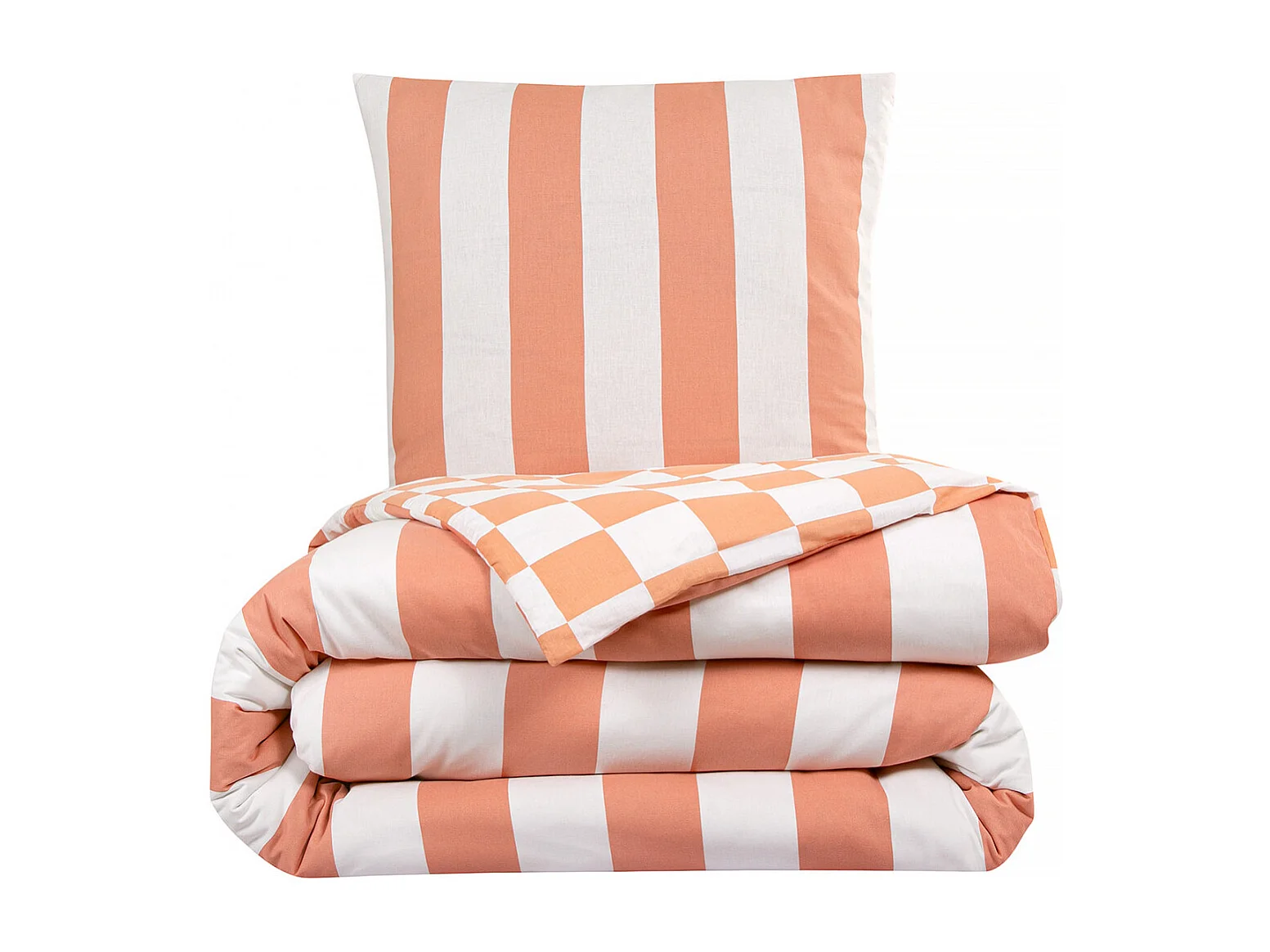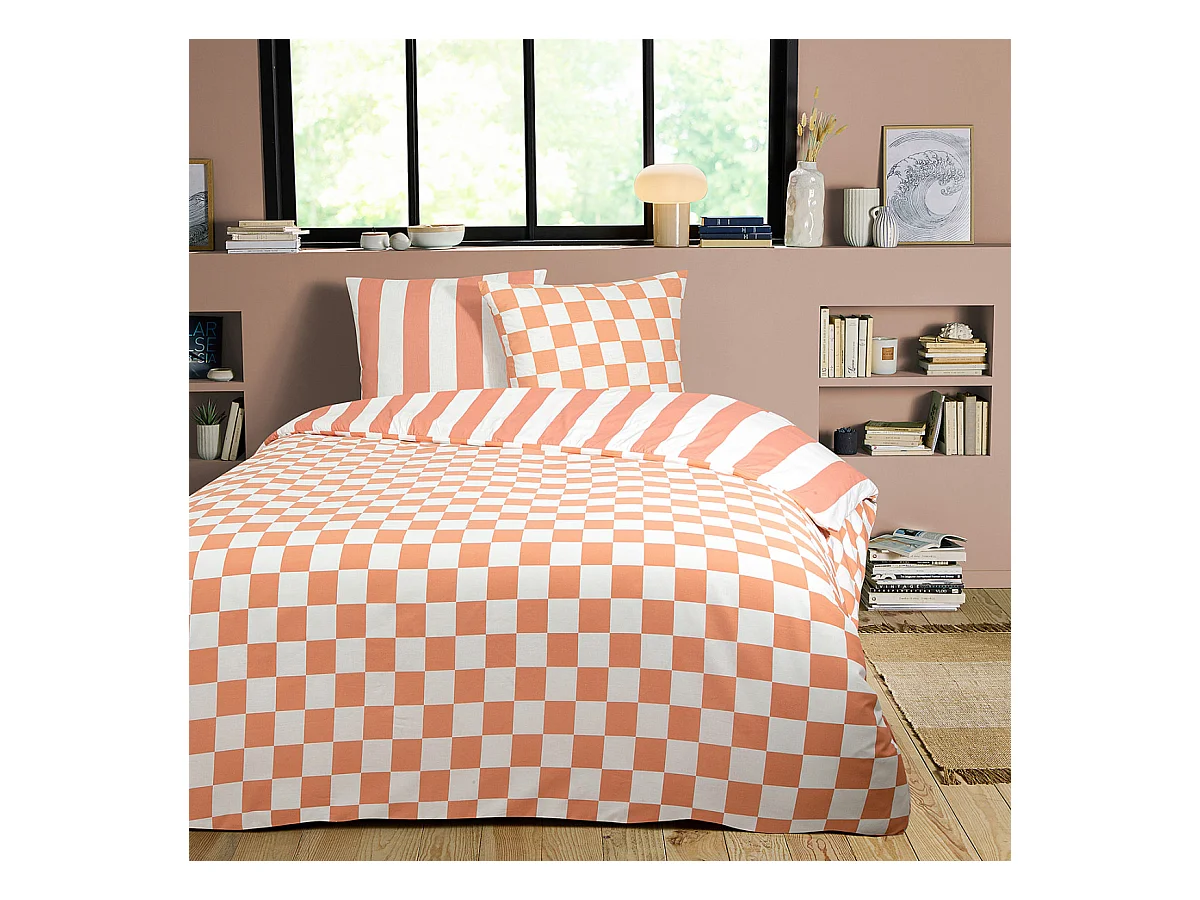 Parure de lit 2 personnes rayé damier réversible 240x220cm