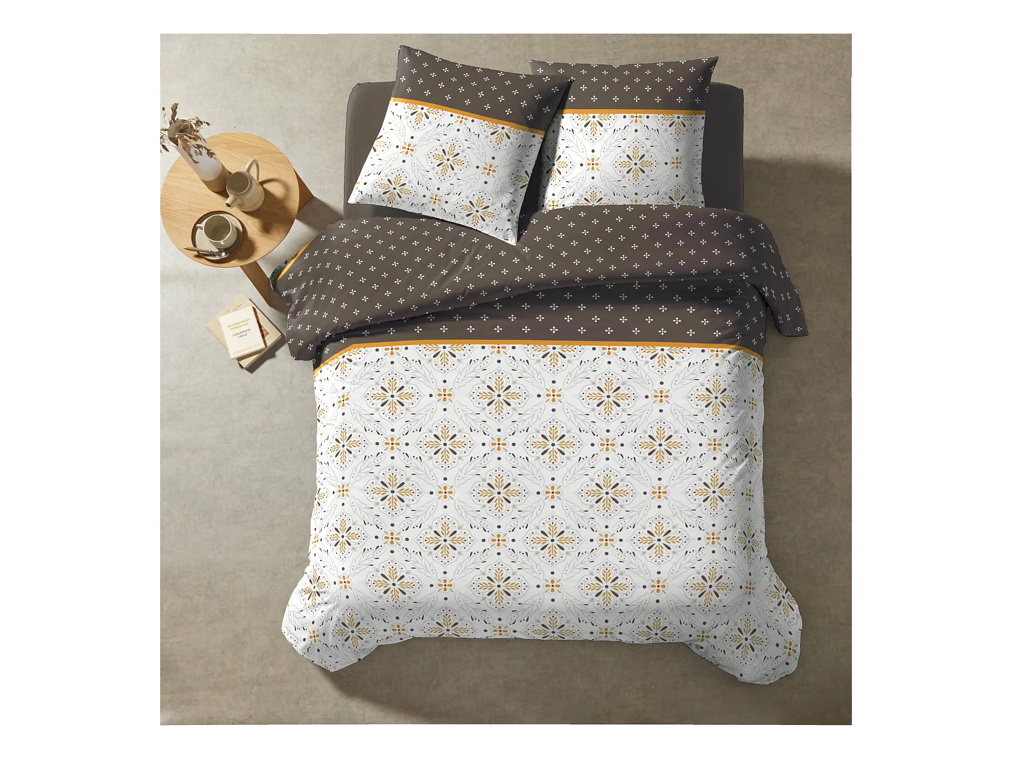 Parure de lit 2 personnes en coton 57 fils imprimé blanc 240x220cm