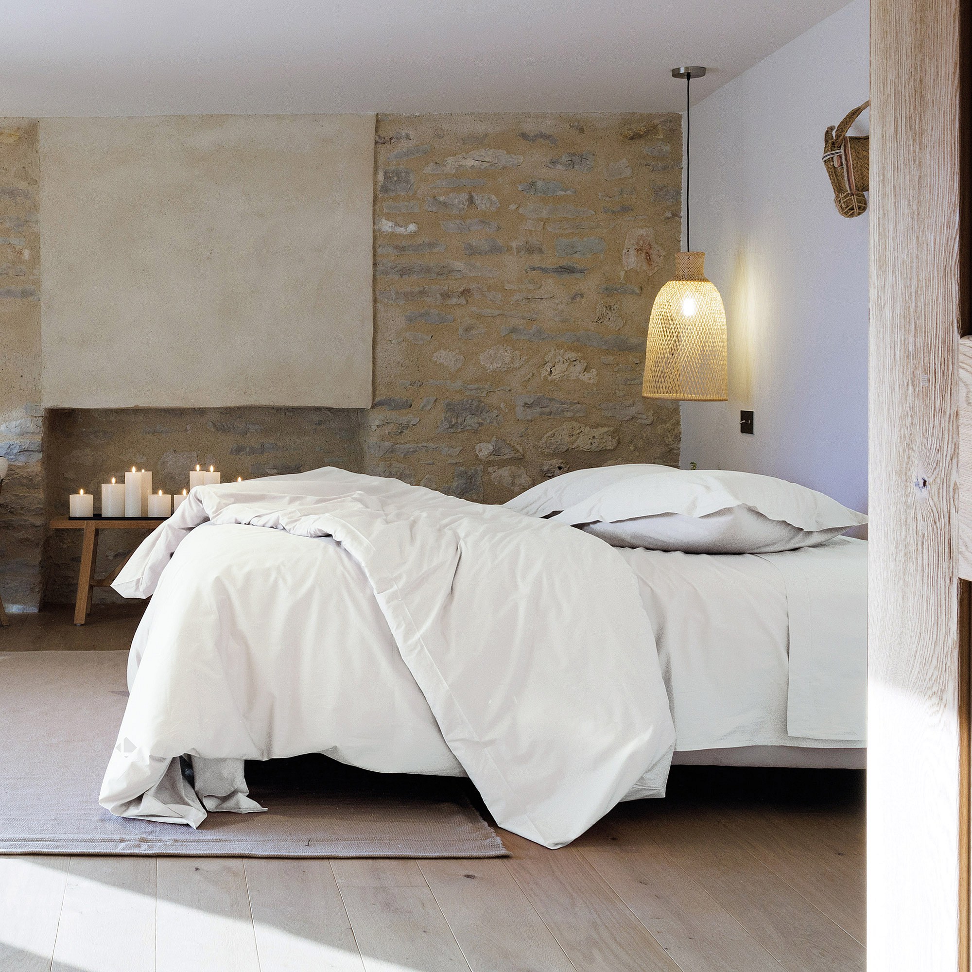 Parure de lit 240x220 cm set 65x65 cm percale MANOIR blanc Neige