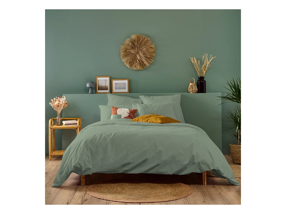 Parure de lit unie 100% Percale de coton - Sauge - 140x200cm
