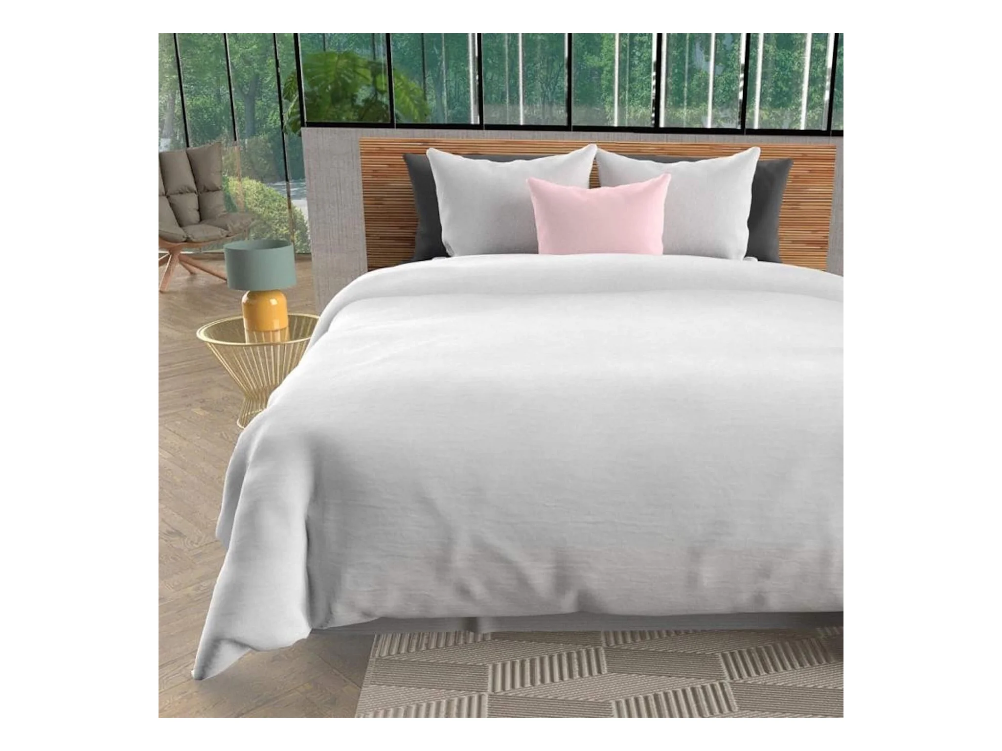 Parure de lit unie 2 personnes percale de coton : Housse 220x240cm+ 2 taie 65x65cm- Blanc