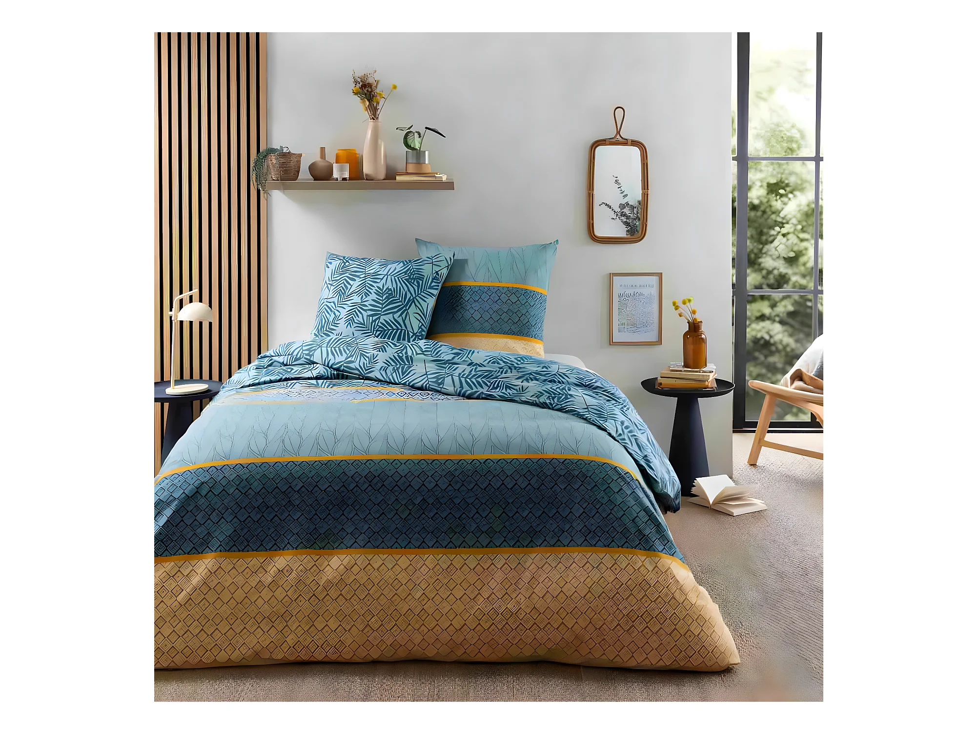 Parure de lit 2 personnes imprimé feuillage réversible 240x220cm
