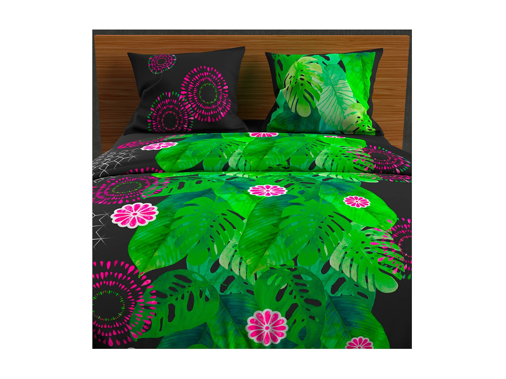 Parure housse de couette 260x240 cm en coton 57 Fils TAHITI anthracite, par Soleil d'ocre
