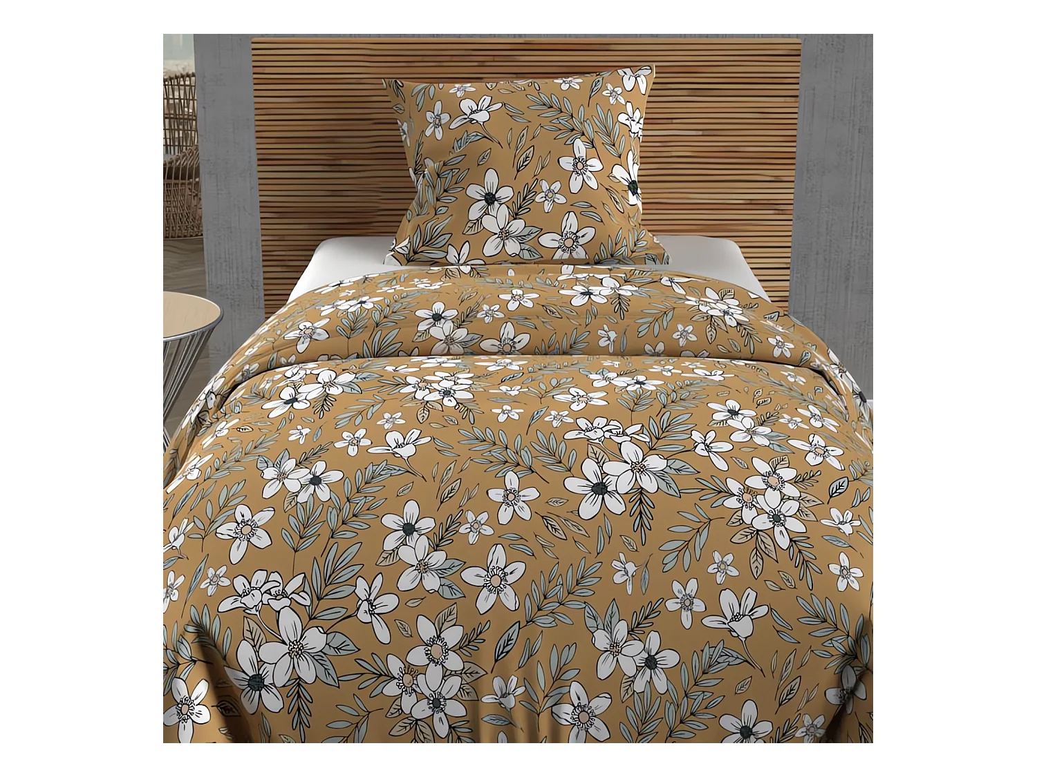 Parure housse de couette coton 57 fils 140x200 cm MANON camel, par Soleil d'ocre