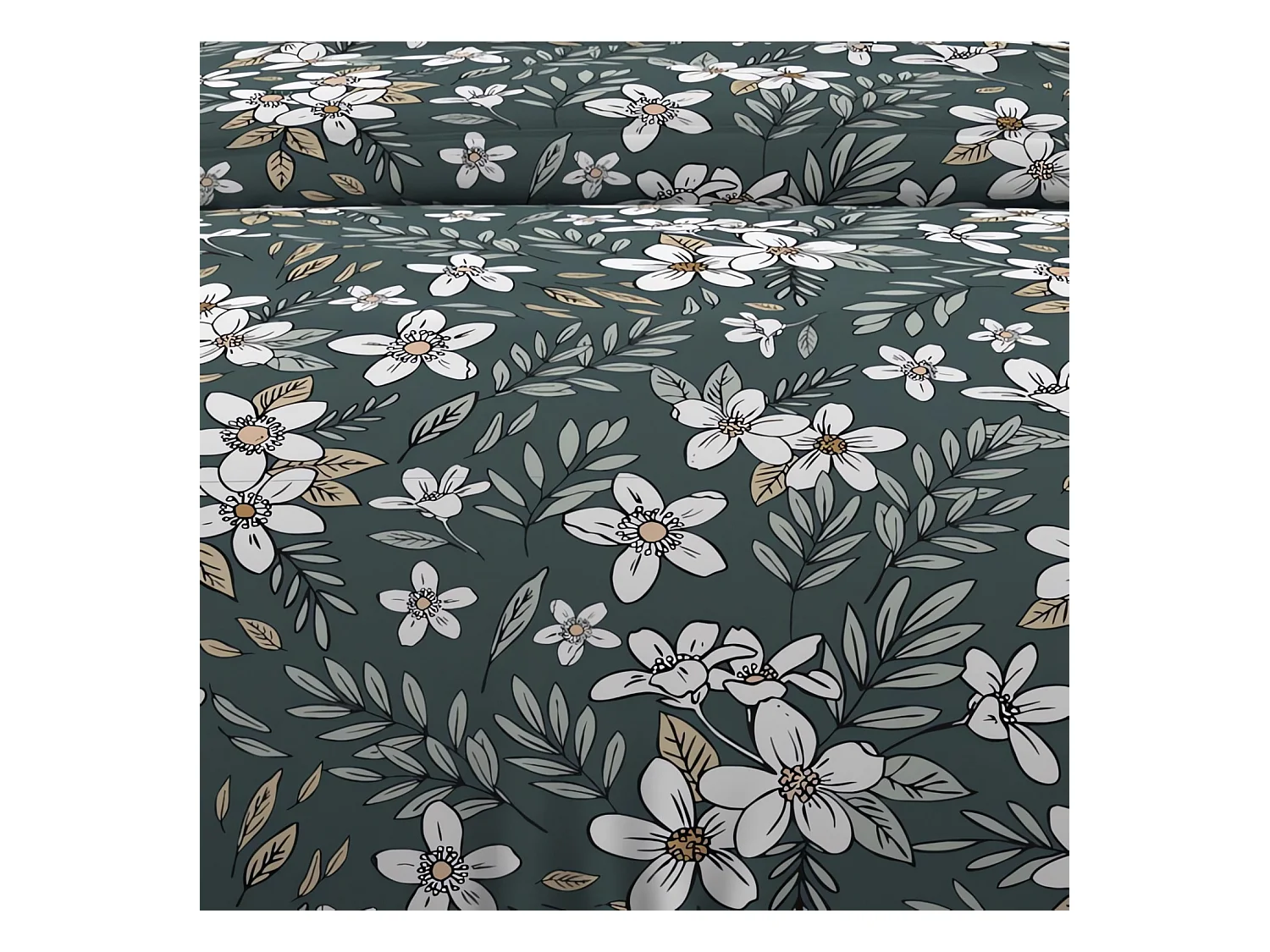 Parure housse de couette en coton 57 fils 260x240 cm ESMERALDA vert, par Soleil d'ocre