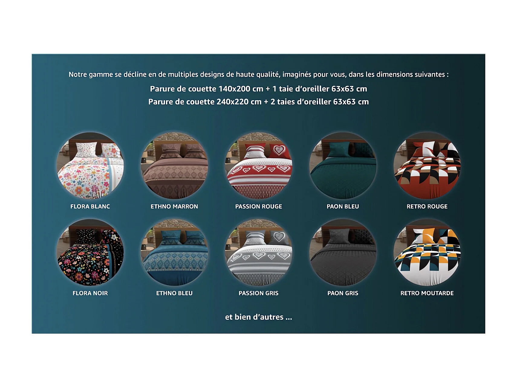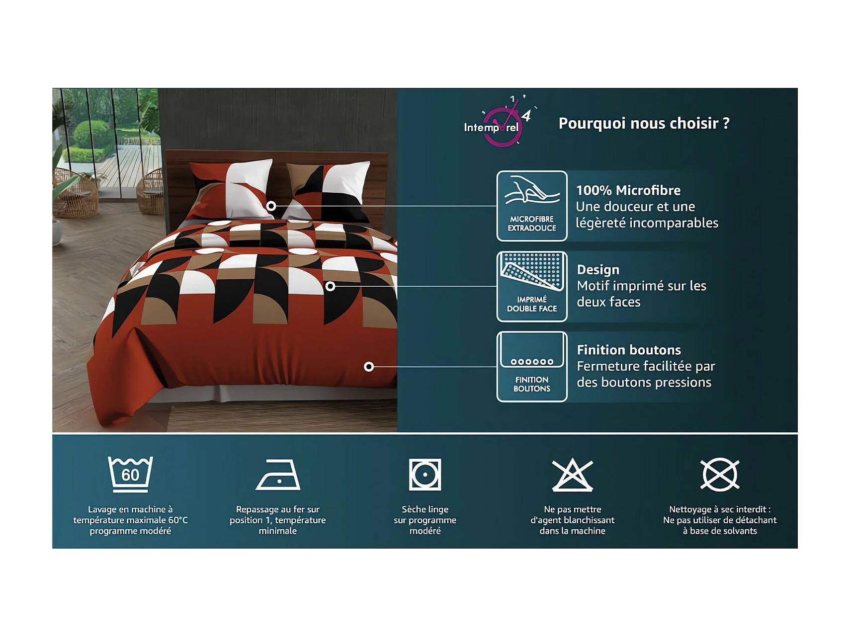 Parure housse de couette microfibre 140X200 cm RETRO rouge, par Intemporel