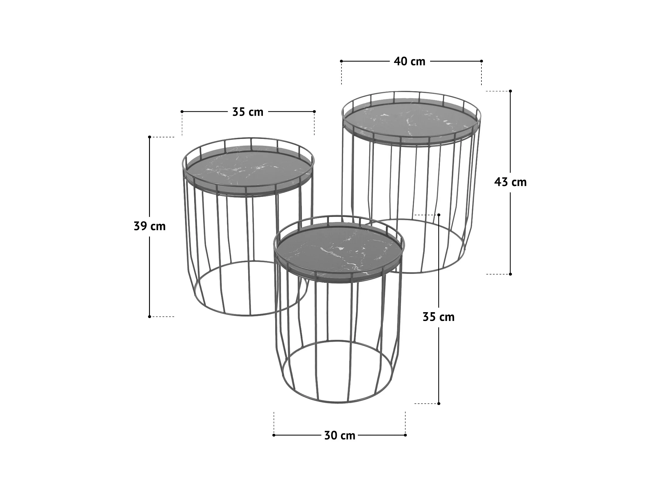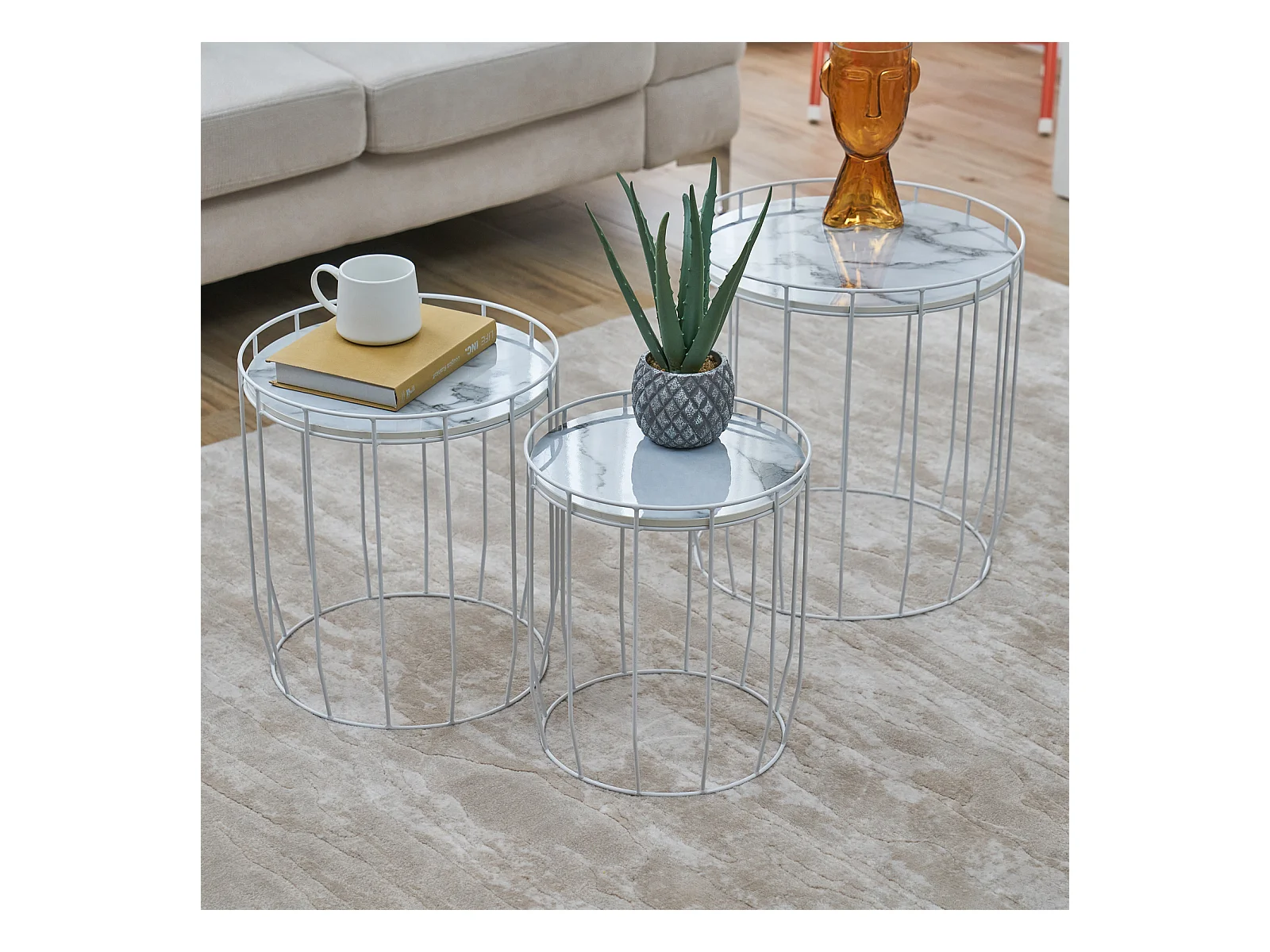 PASI Lot de 3 Tables d'appoint Tables basses Rondes Blanches