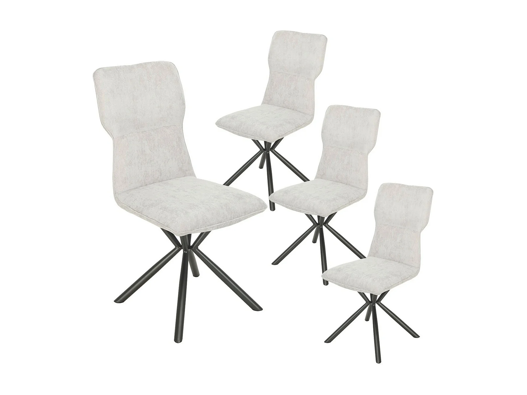 PAST - Lot de 4 Chaises Tissu Chiné Blanc Piètement Etoile