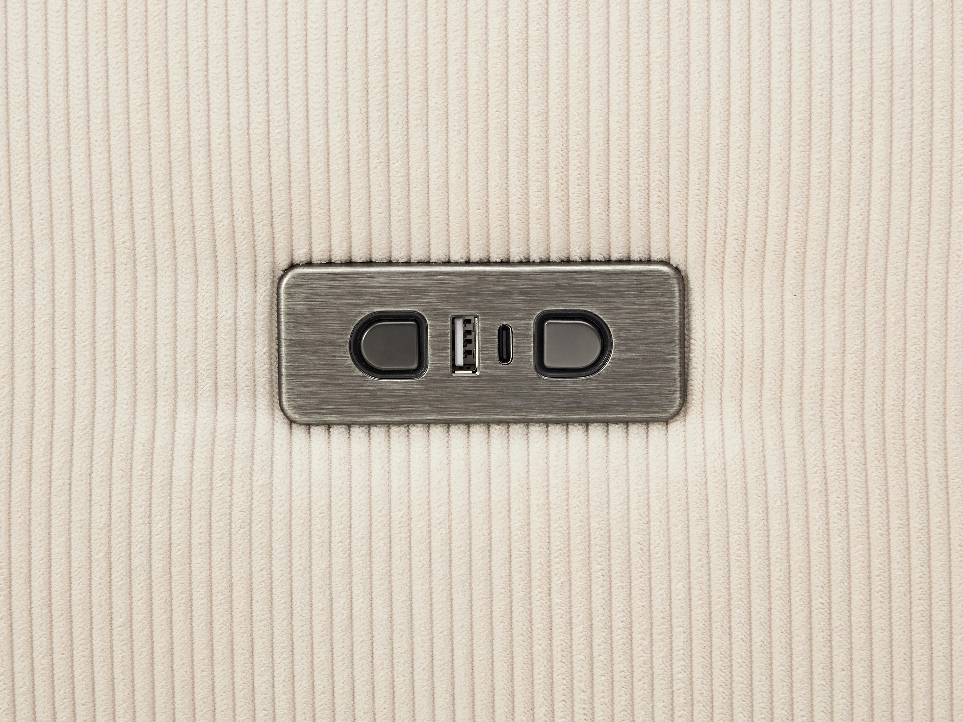 Canapé 4 places avec assise coulissante électrique en velours côtelé fines côtes beige PASTARO