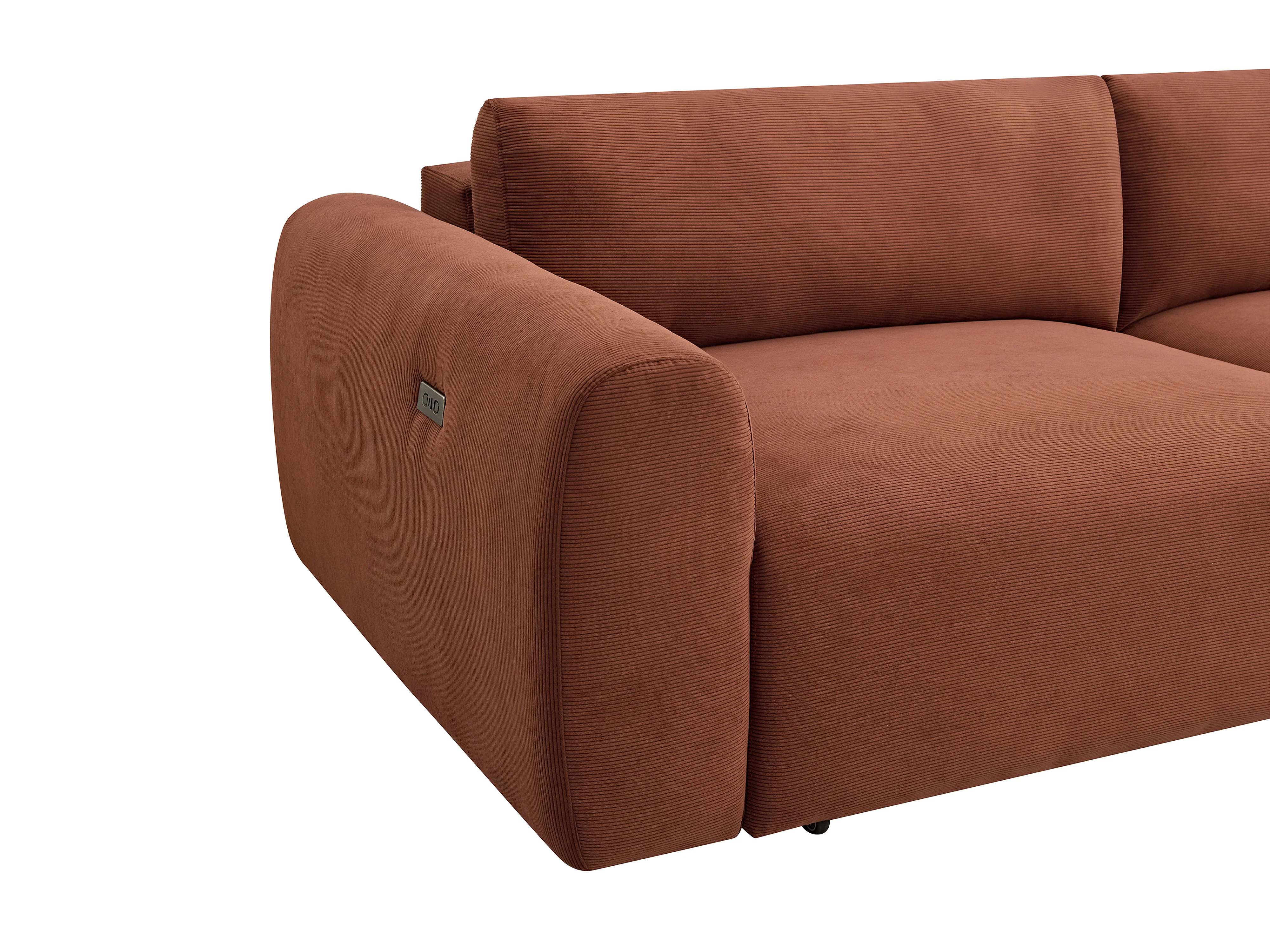 Canapé 4 places avec assise coulissante électrique en velours côtelé fines côtes terracotta PASTARO