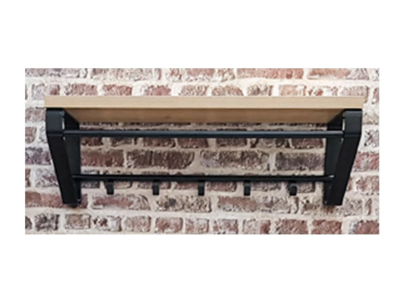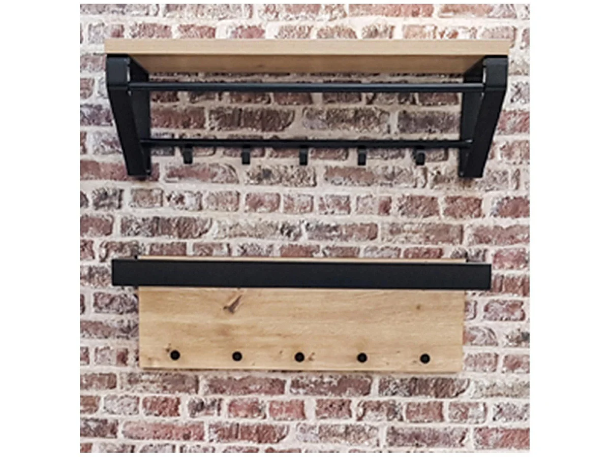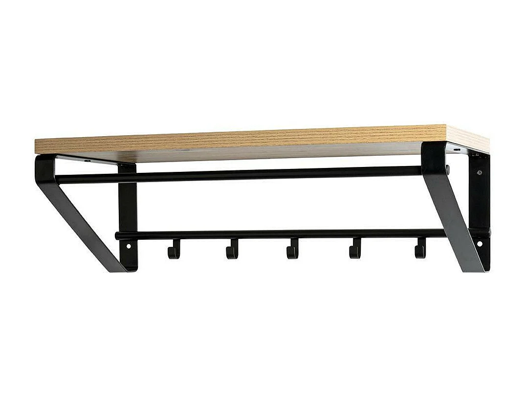Patère Murale 5 Crochets "Eviola" 70cm Chêne & Noir