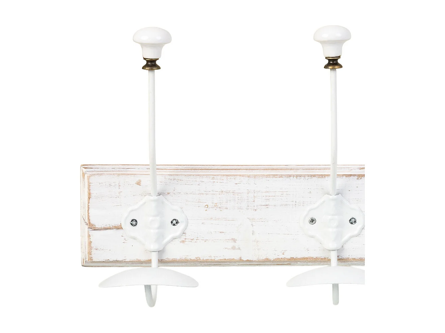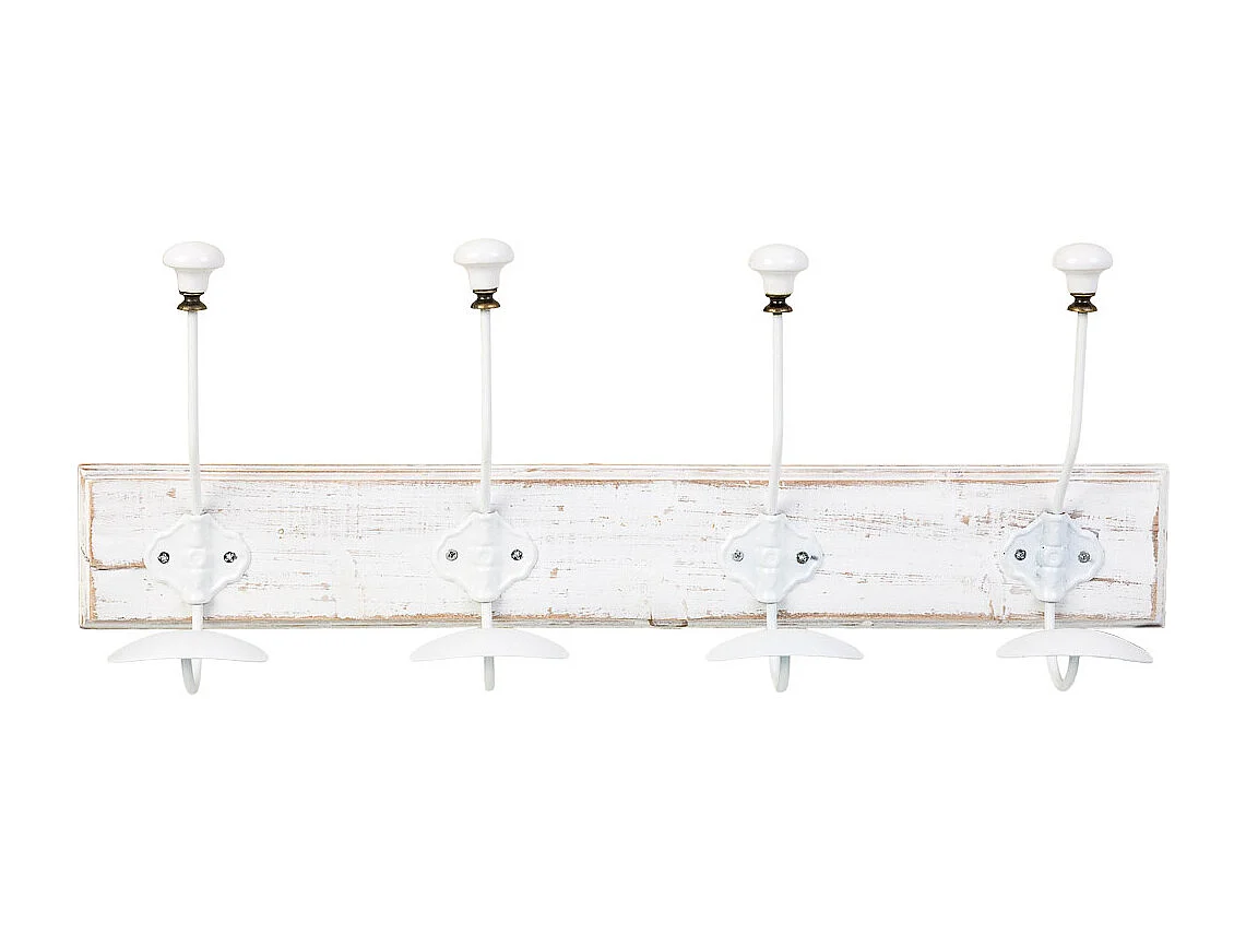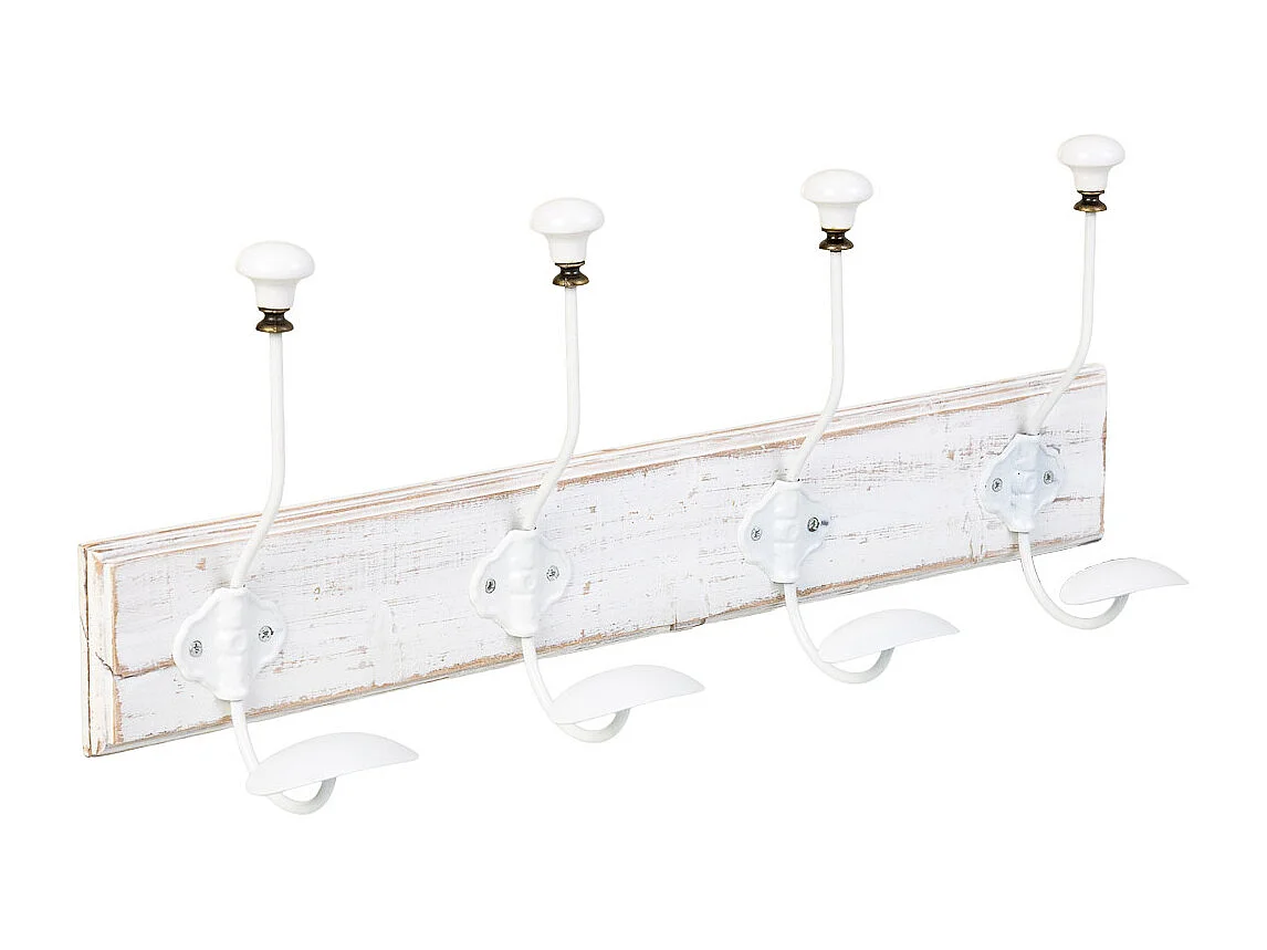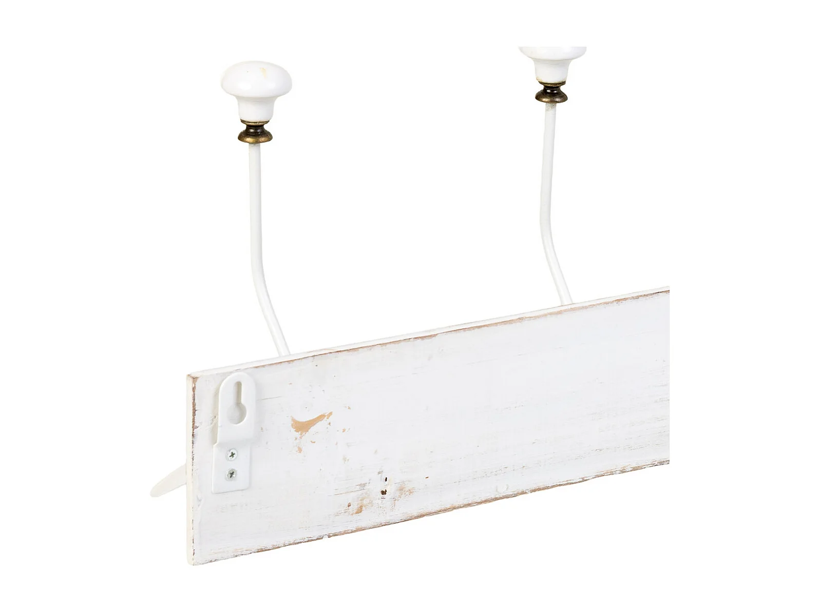 Patère murale en bois sculpté blanc 11.5x8.5x20.5h