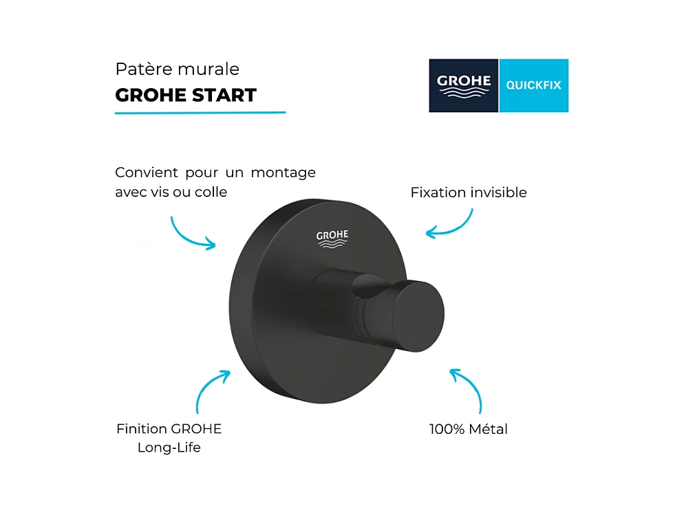 Patère murale GROHE Start noir mat + colle GROHE QuickGlue