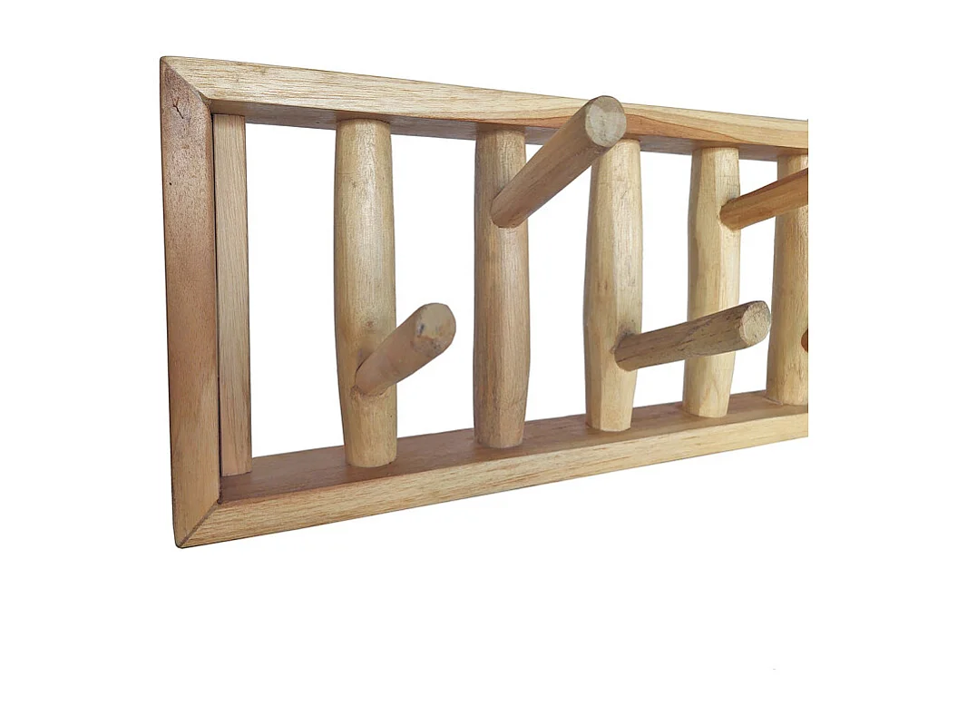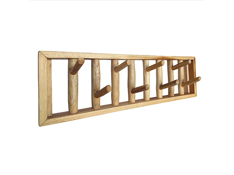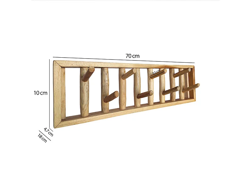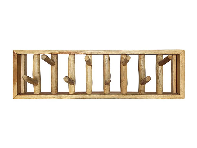Patère/Porte-manteau mural 70 cm 8 crochets bois teck clair – ROBINSON