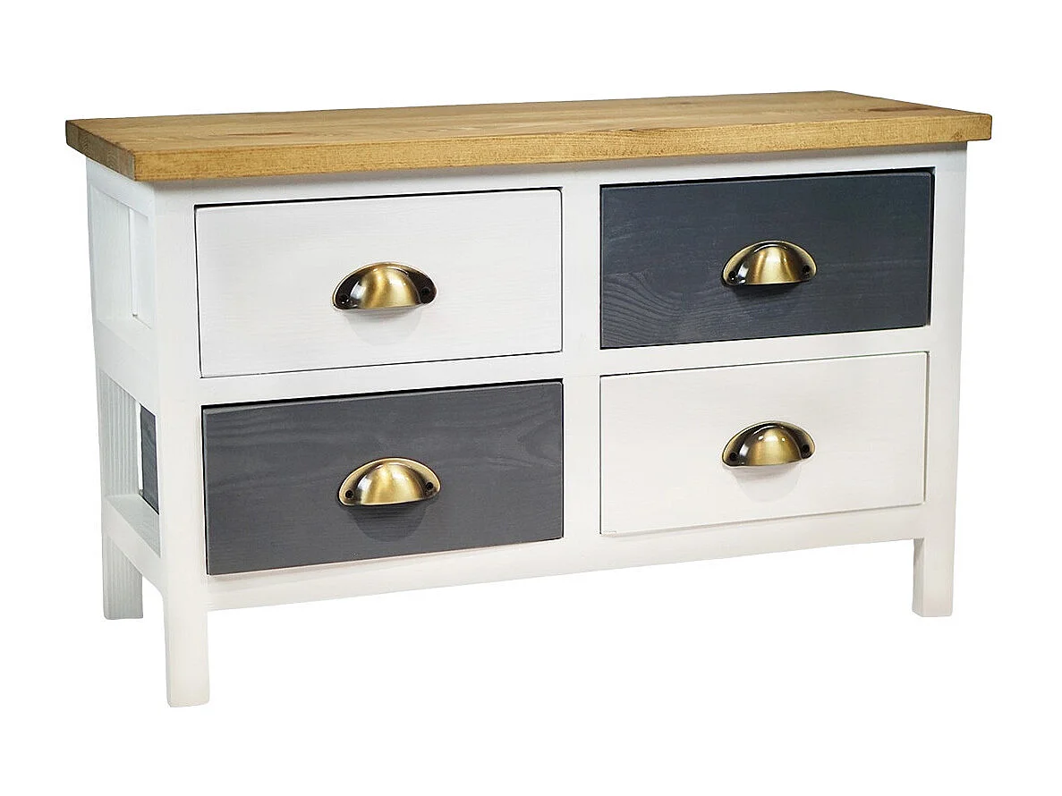 PATTY - Meuble 4 Tiroirs en Pin Teinté Gris et Blanc Plateau Naturel
