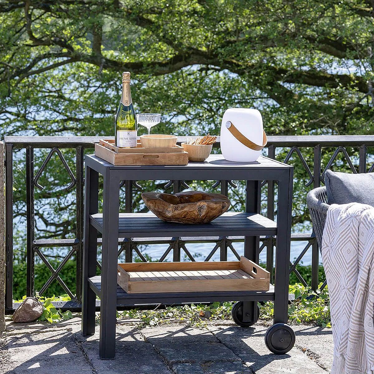 PAULETTE - Desserte à Roulettes Noires en Aluminium et Plateaux Effet Bois