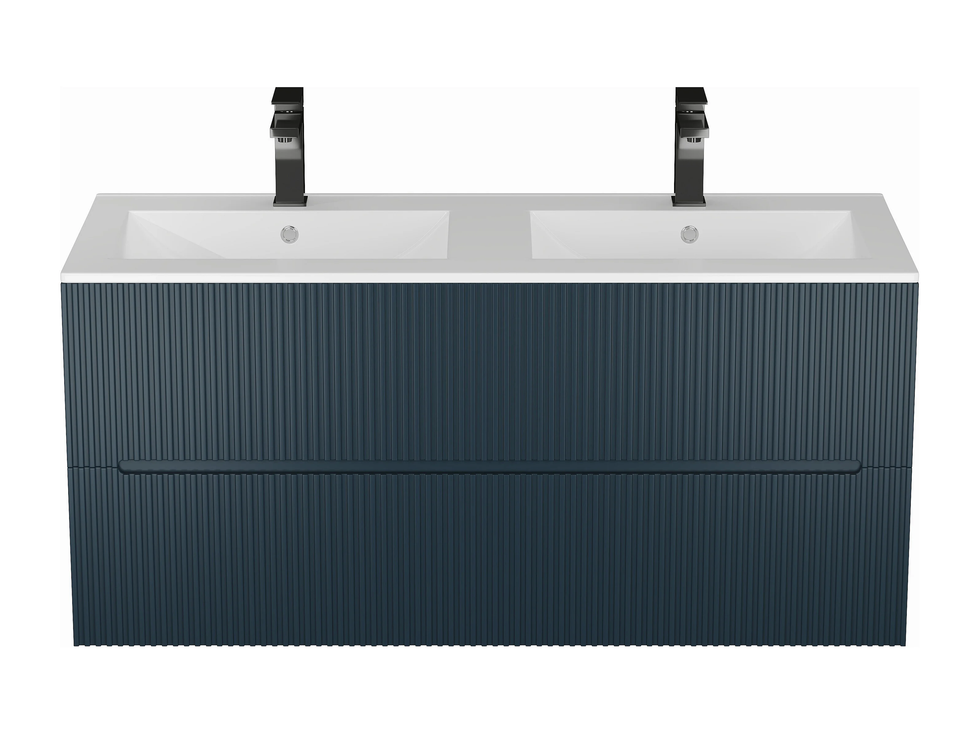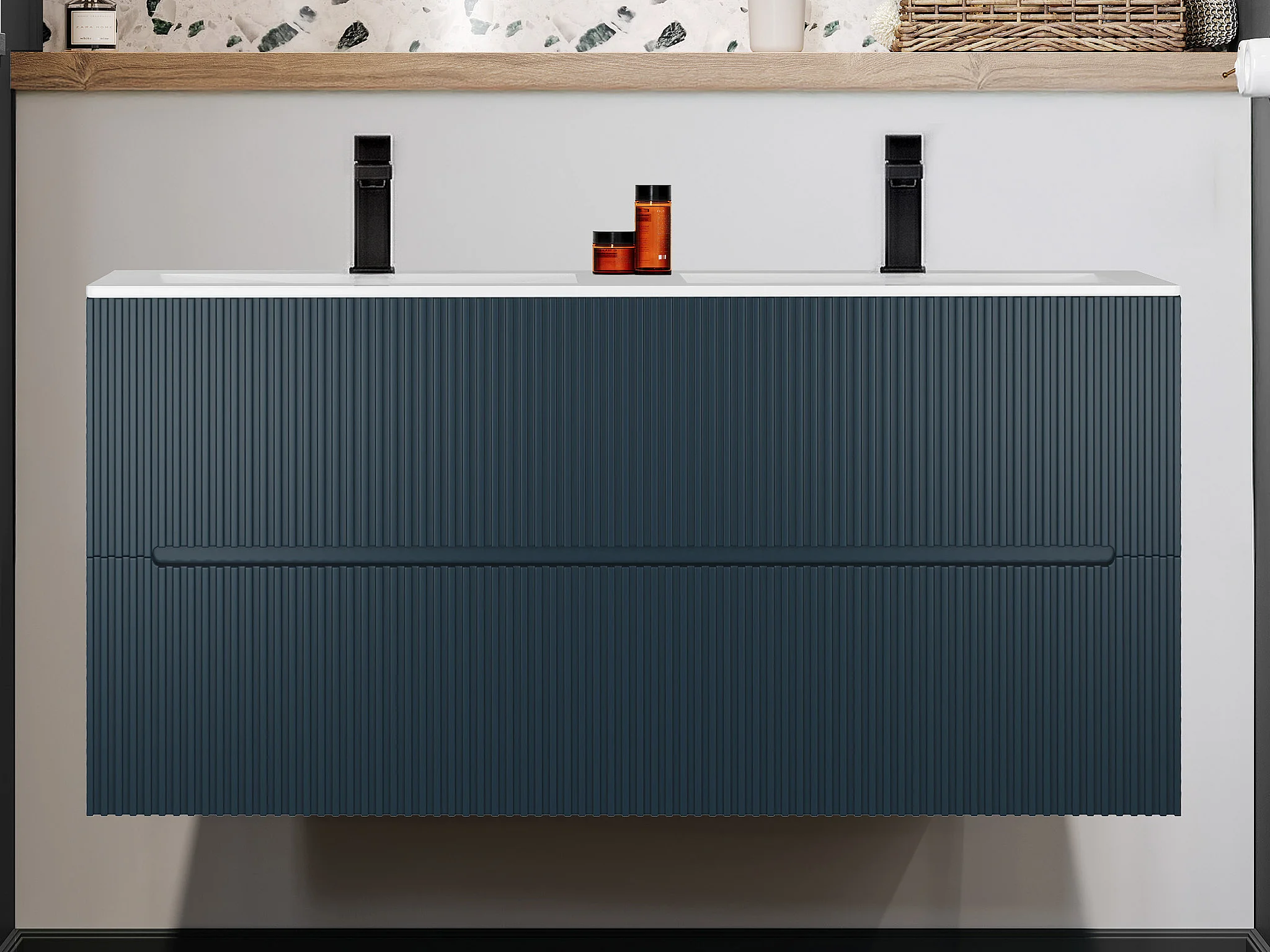 Meuble de salle de bain suspendu strié avec vasque à encastrer et robinet- Bleu - 120 cm - PAVANI