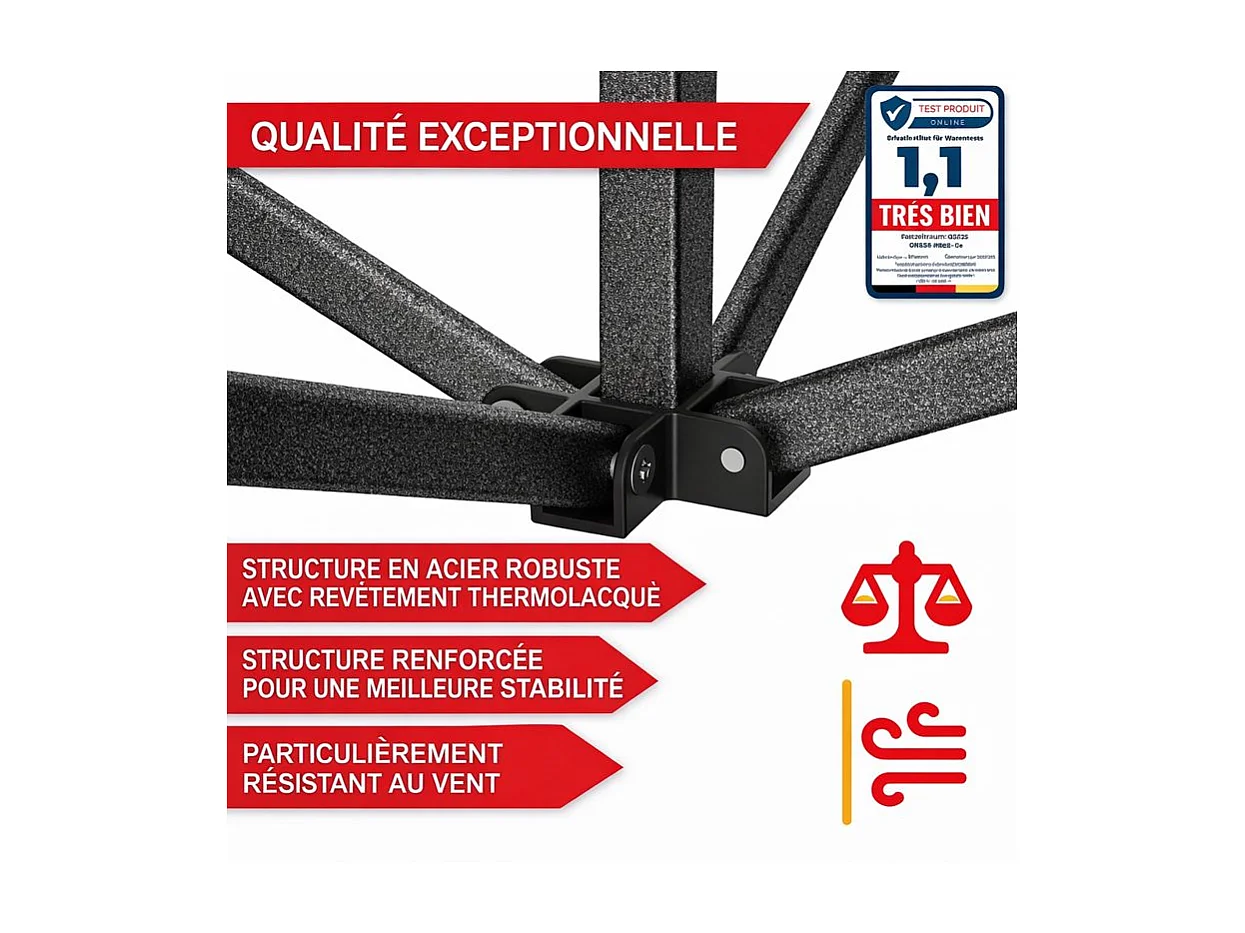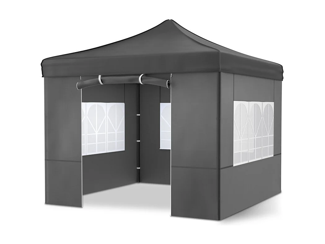 Pavillon 3x3m Tonnelle de jardin pliable Gris avec fenêtres Sac de rangement inclus