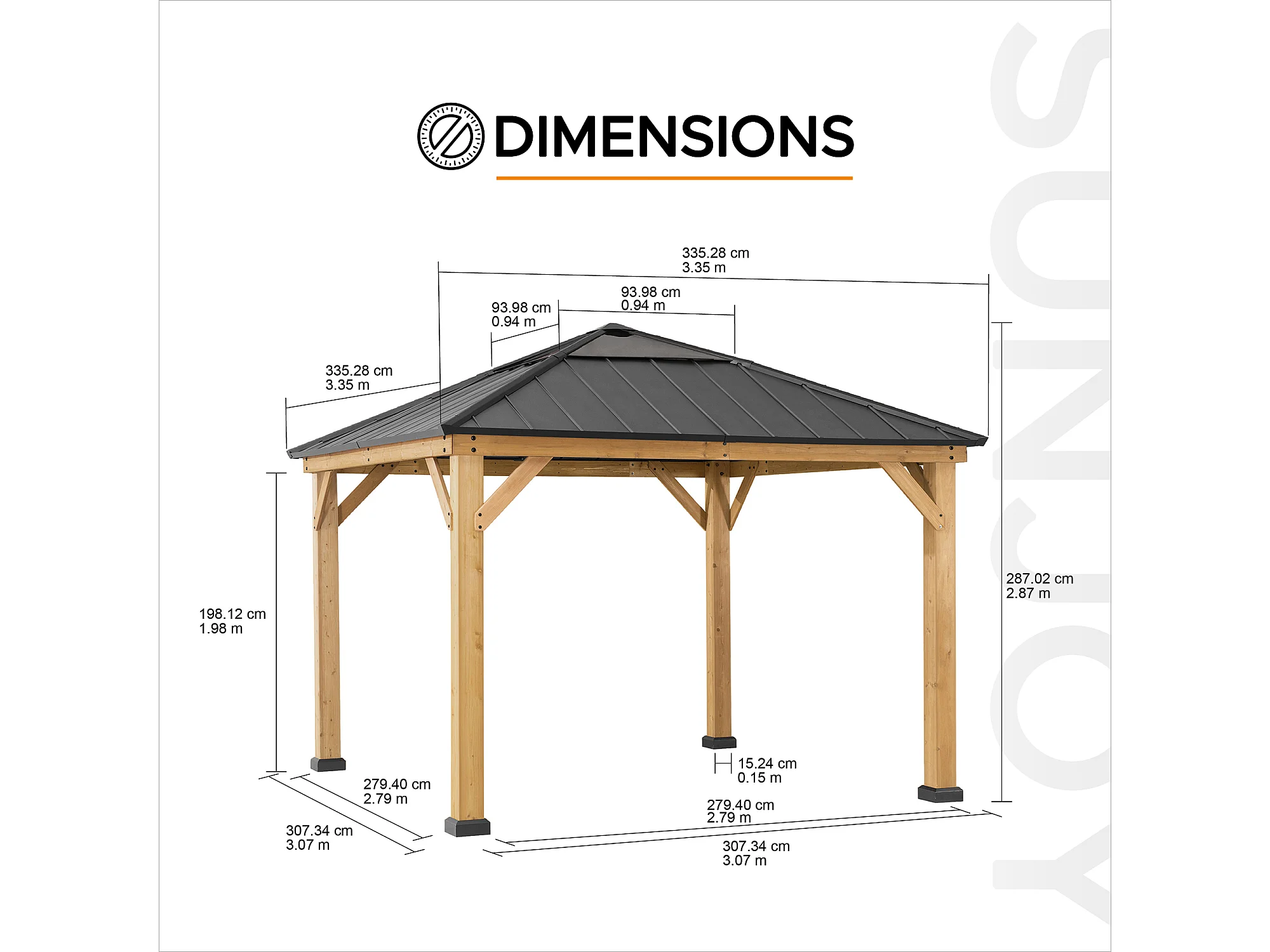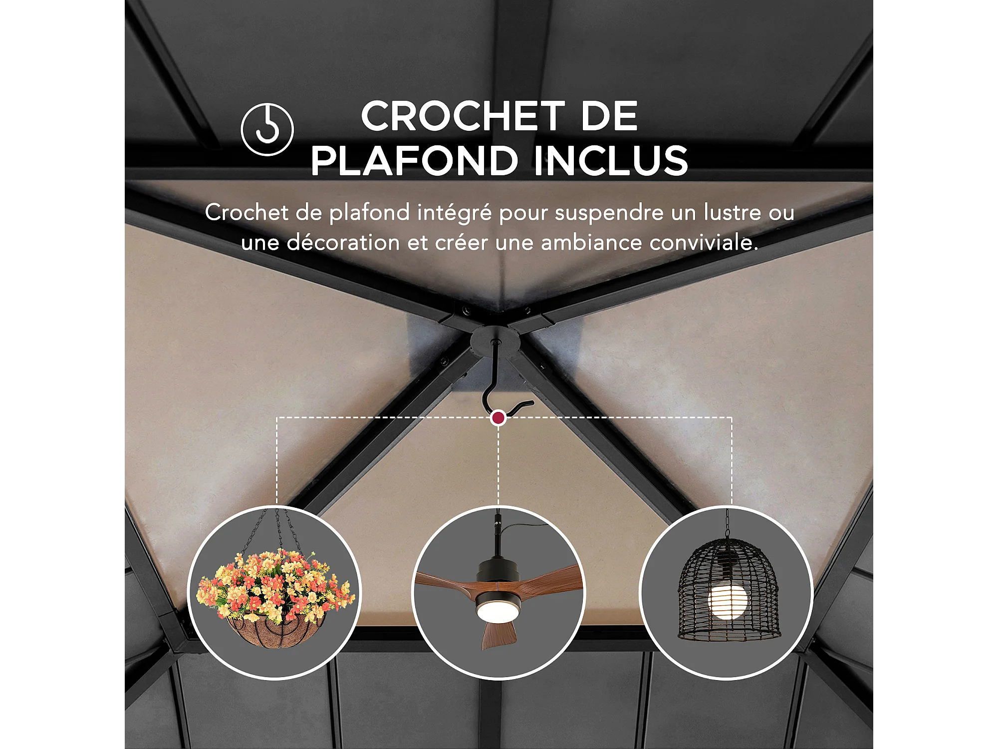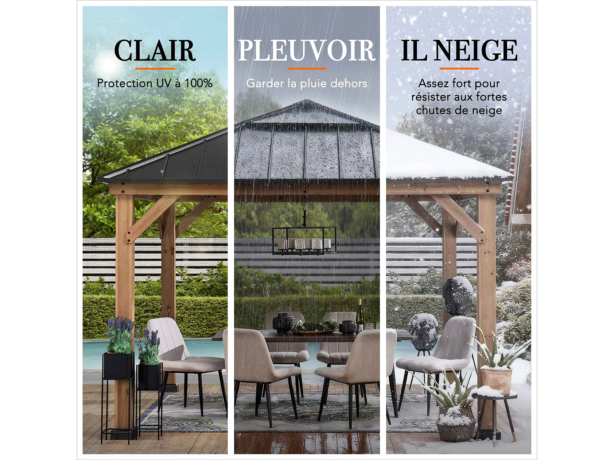 Pavillon en bois avec cadre en acier anthracite et lucarne en polycarbonate PIRIN 336cm x 336cm