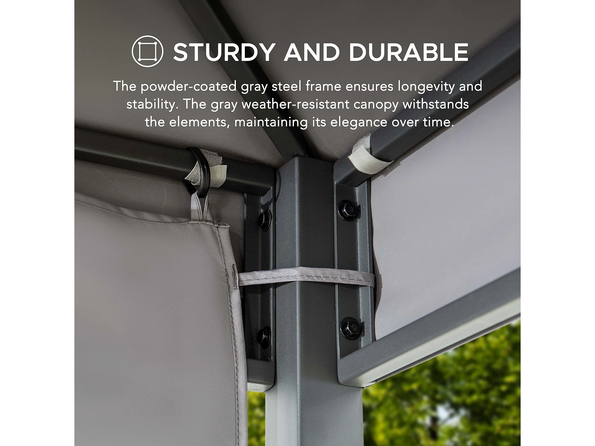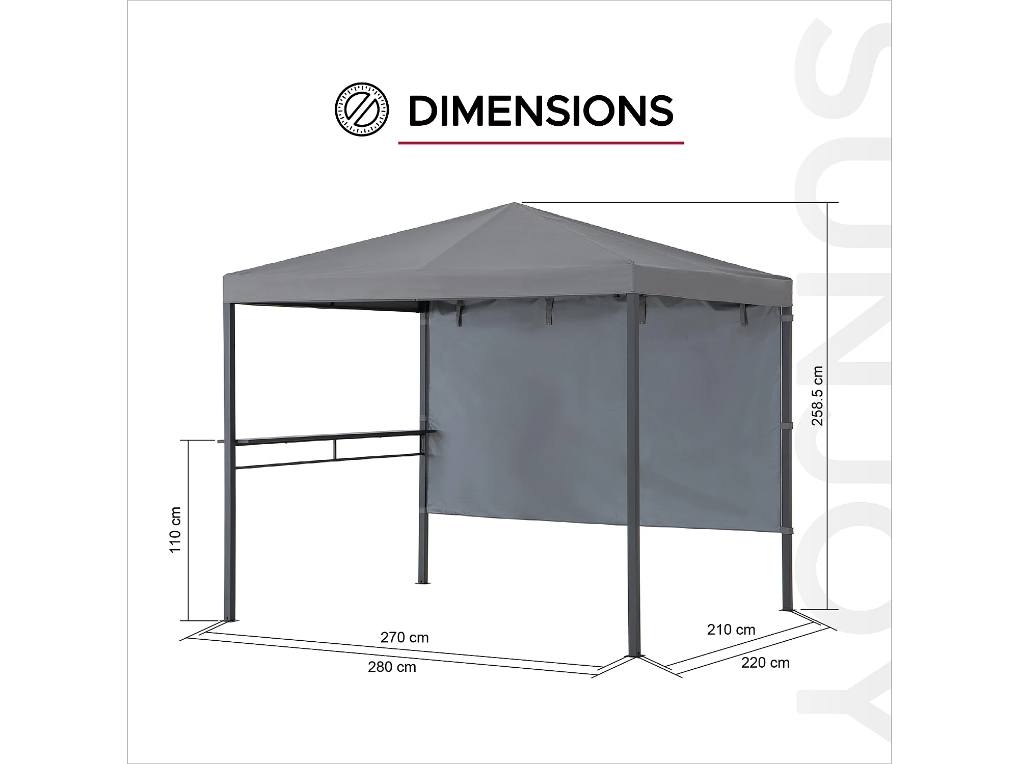 Pavillon Tonnelle de jardin en acier KABRU 220cm x 280cm, toit souple, gris