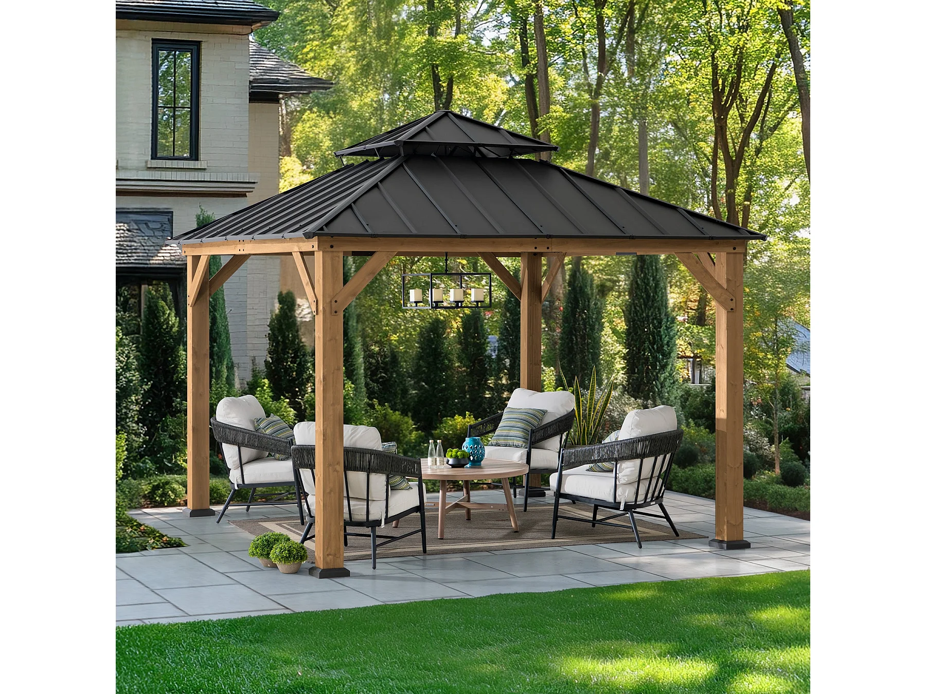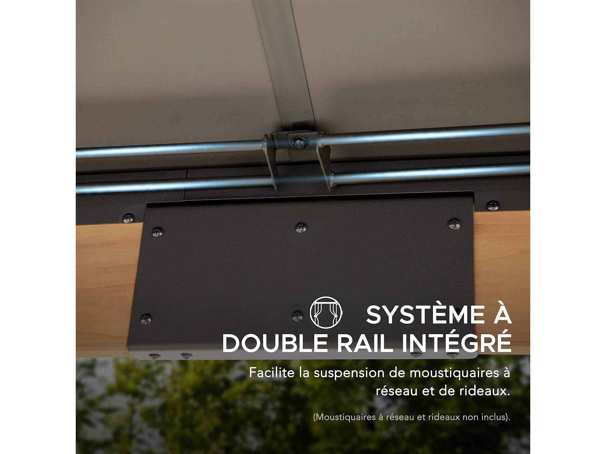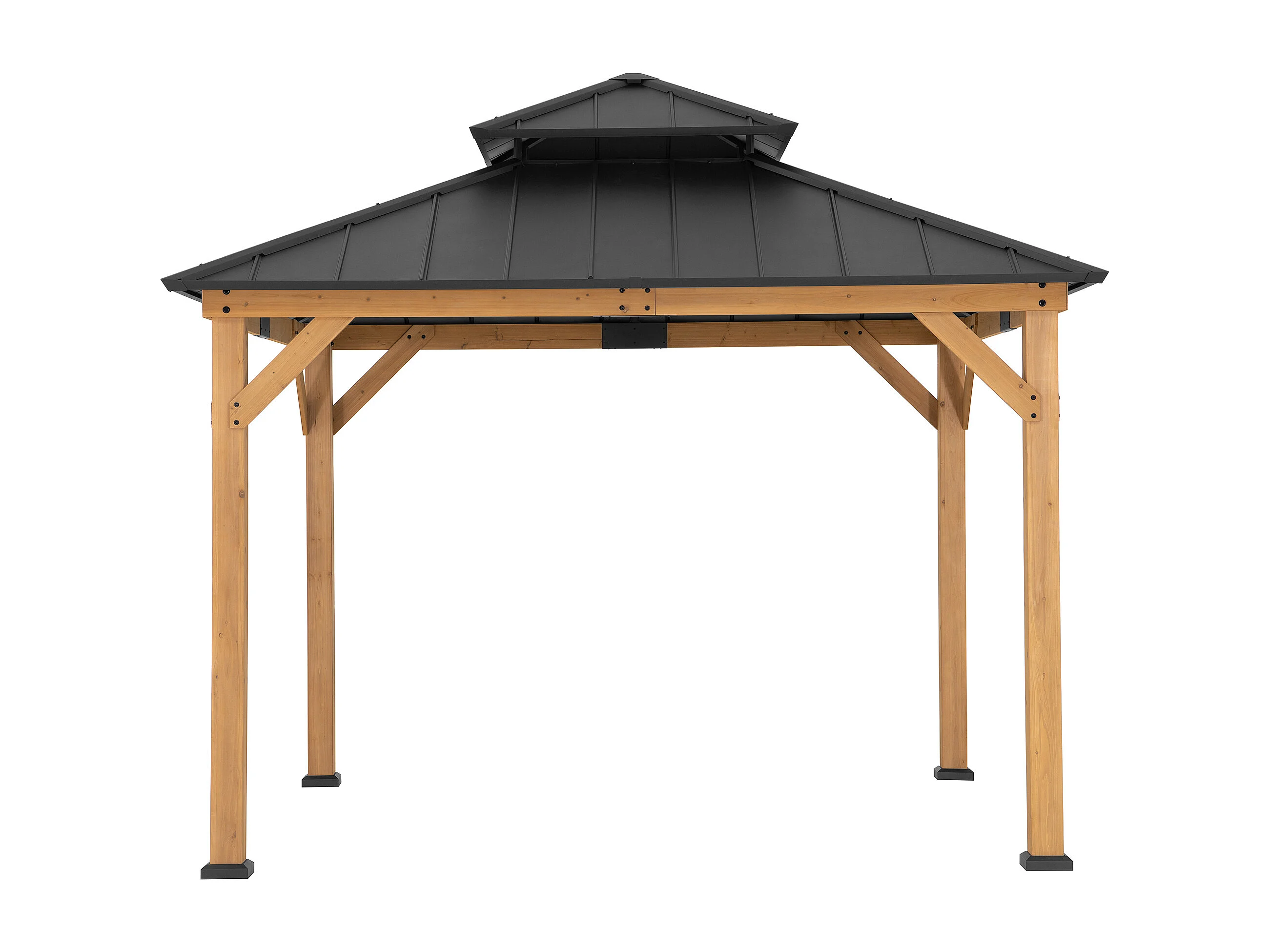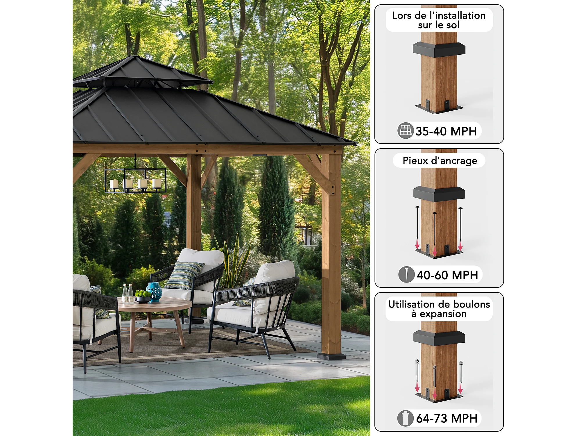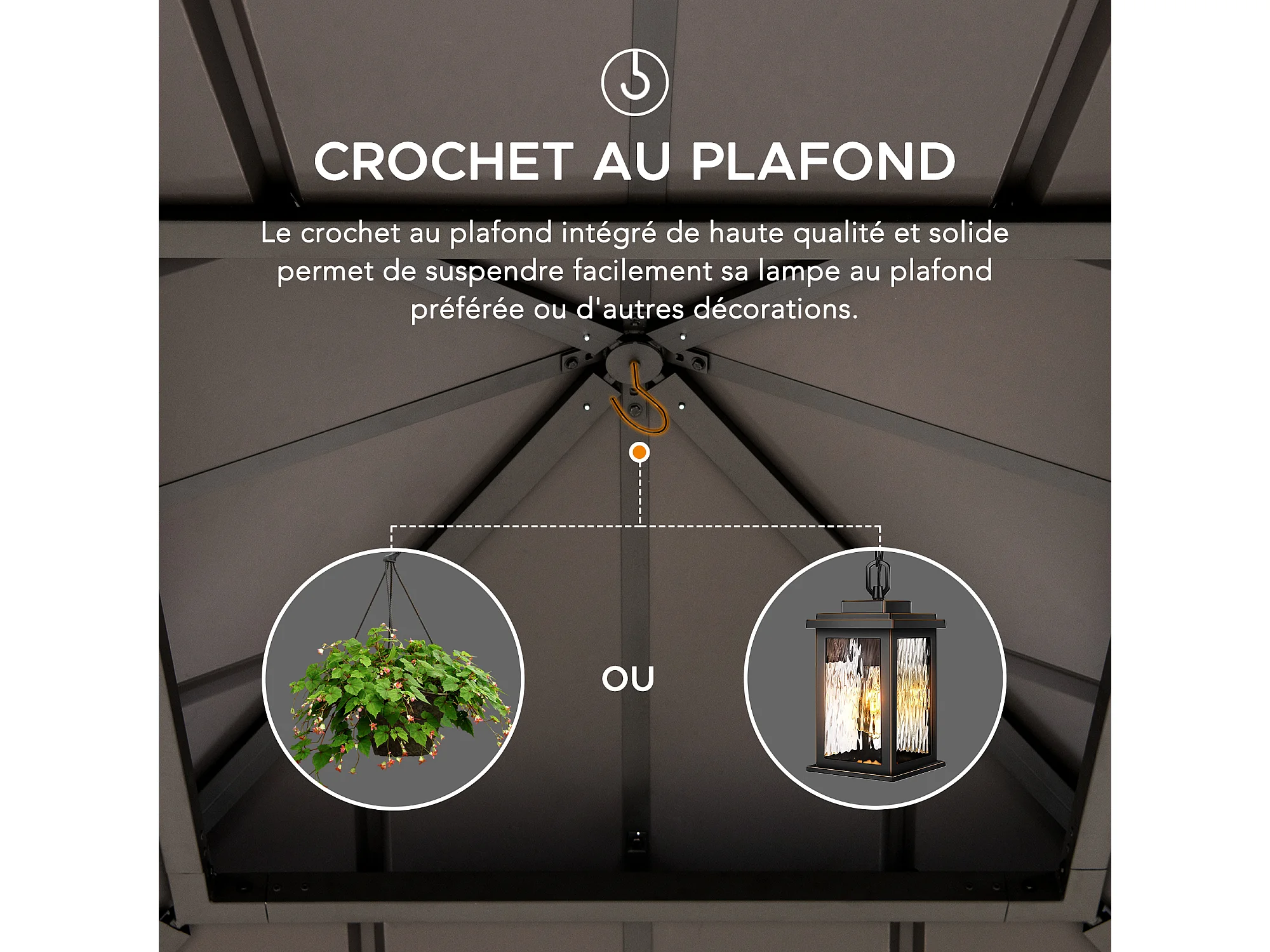 Pavillon Tonnelle d'extérieur en bois avec toit rigide en acier anthracite et crochet de plafond KAPS 330 cm x 330 cm