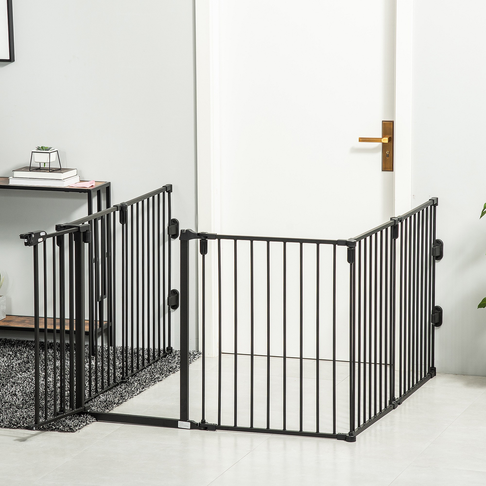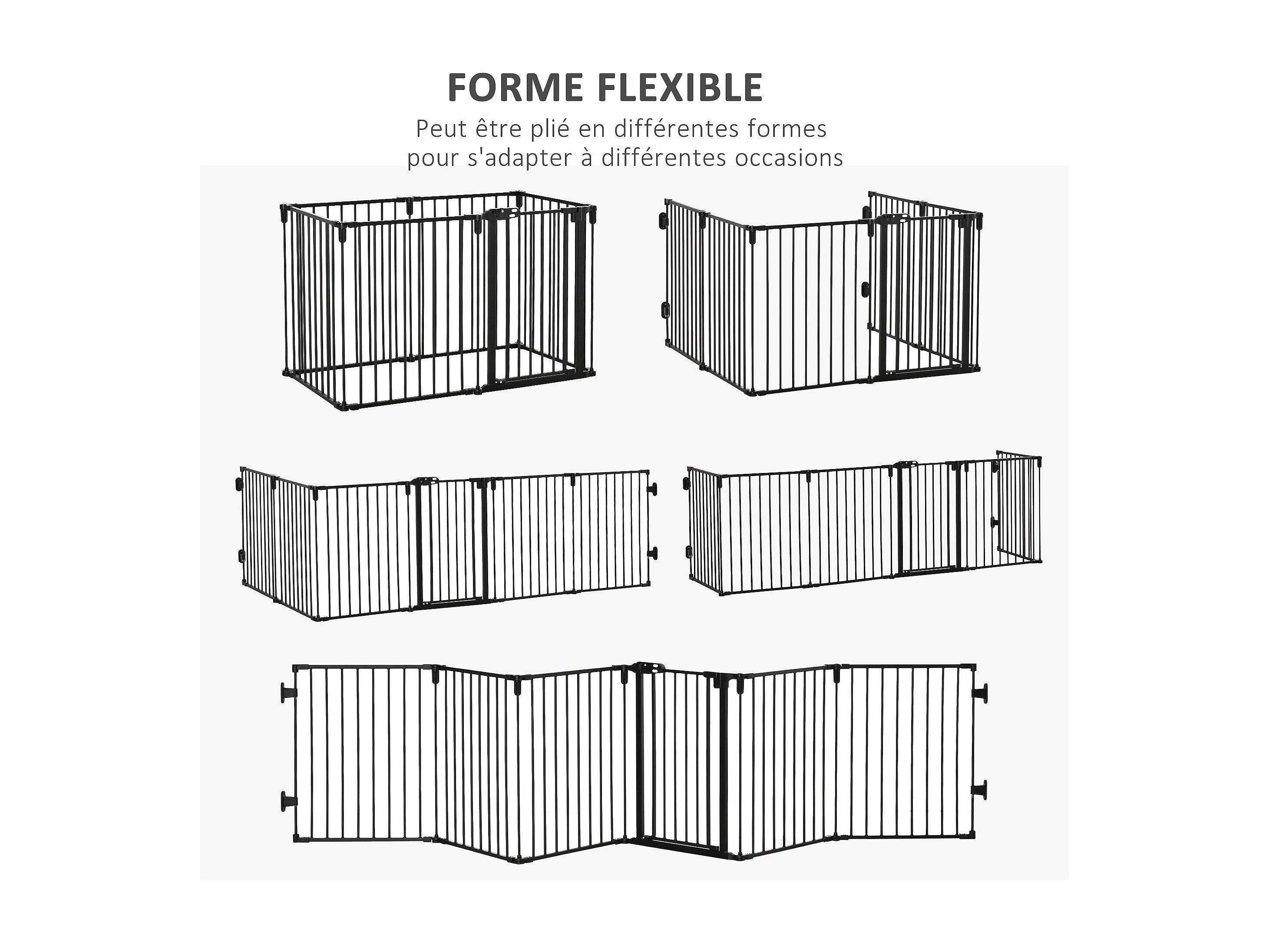 PawHut Barrière de sécurité - parc enclos chien modulable pliable - porte verrouillable - 6 panneaux acier et PP - dim. 362,5L max. x 76H cm noir