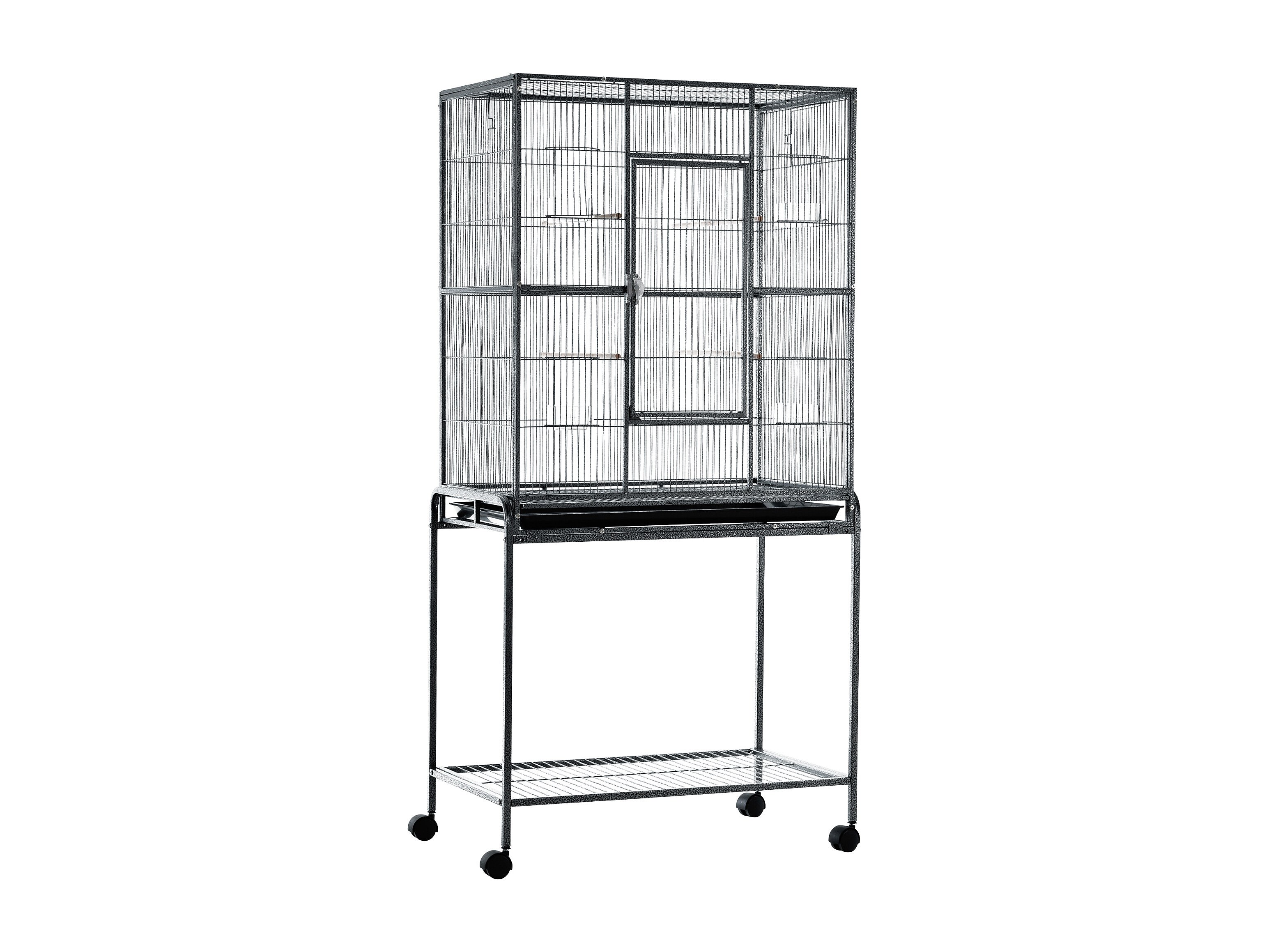 Cage à oiseaux avec séparation mangeoire et perchoir 95L x 45l x 102H cm Noir et Gris