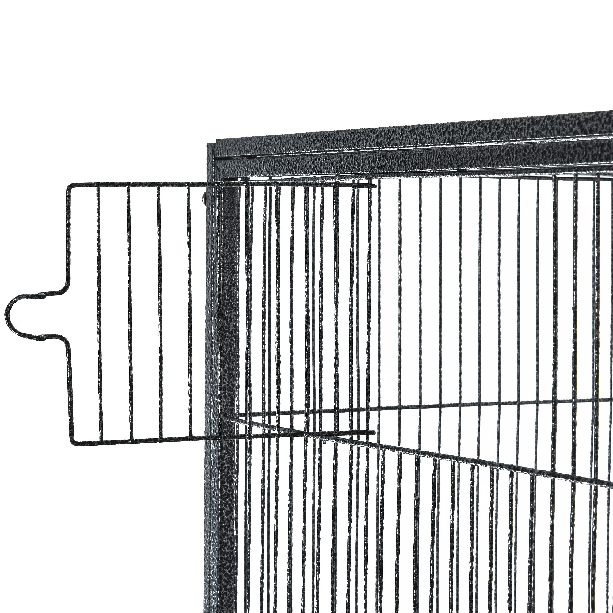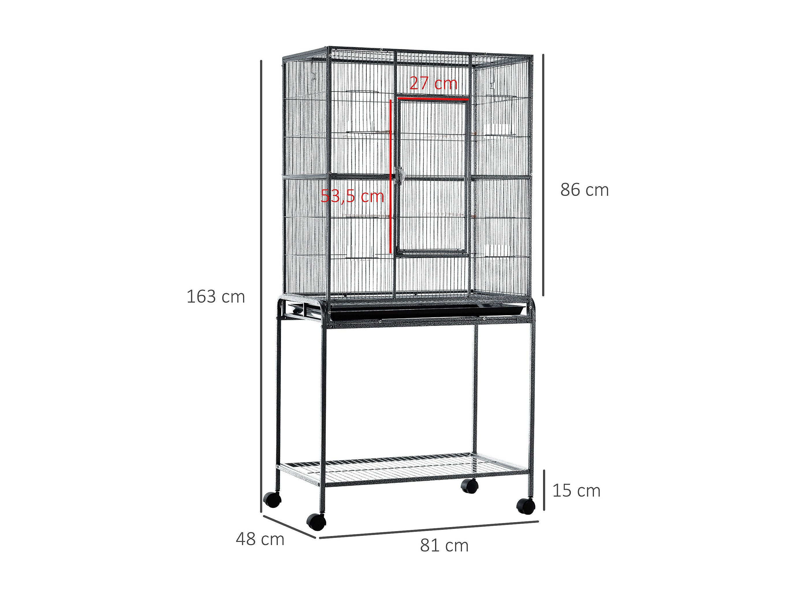 PawHut Cage à Oiseaux Portable avec 4 Mangeoires et 4 Perchoirs Pratique 81 x 48 x 163 cm Noir et Gris