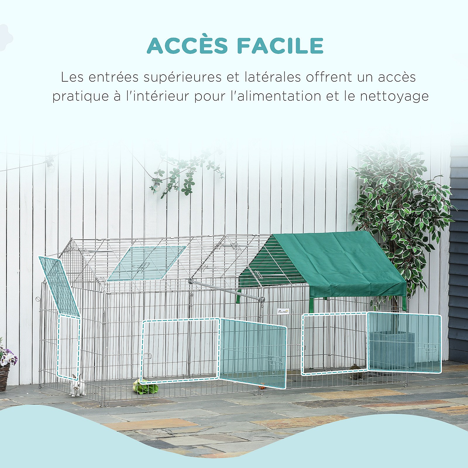PawHut Parc enclos métal époxy cage extérieure dim. 2,20L x 1,03l x 1,03H m 3 portes et trappe surface abrité PE vert