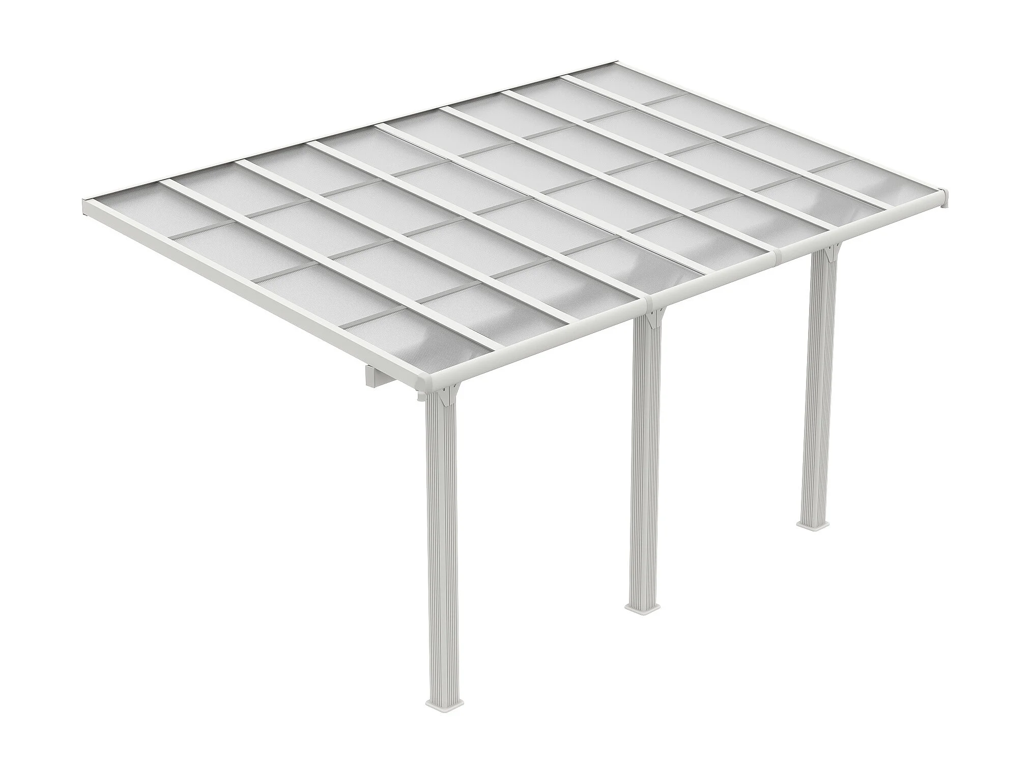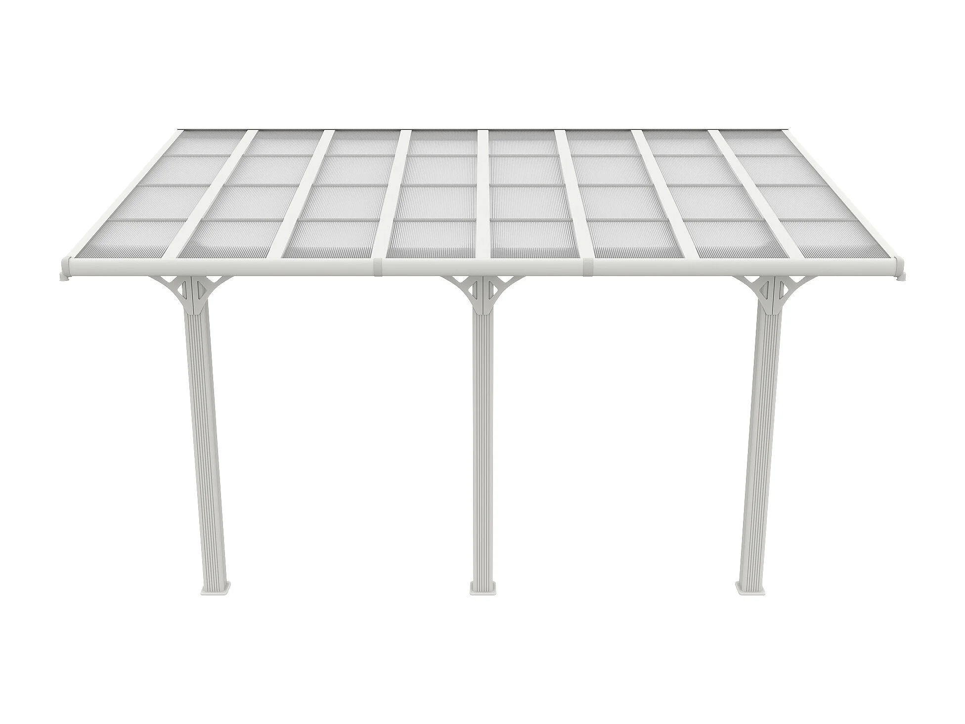 Carport pergola adossée en aluminium et toit polycarbonate - 15,13 m² - blanc - PAZERA