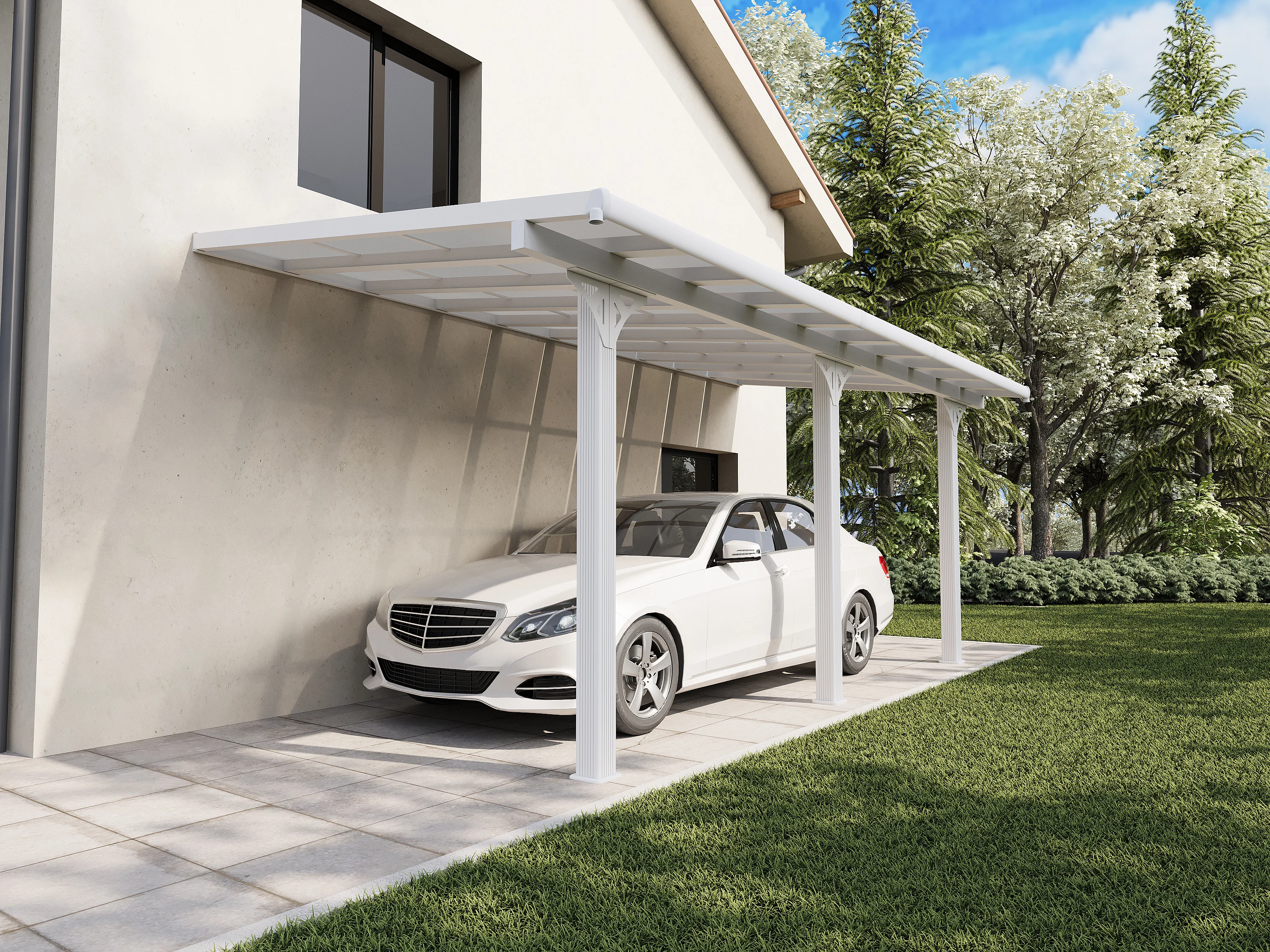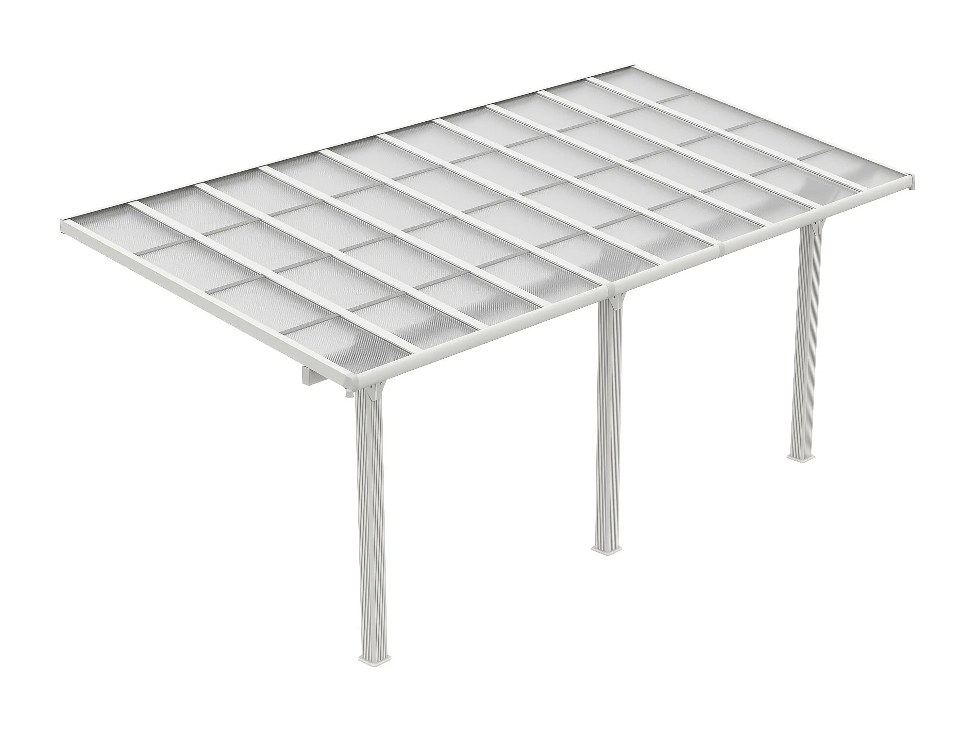Carport pergola adossée en aluminium et toit polycarbonate - 18,54 m² - blanc - PAZERA