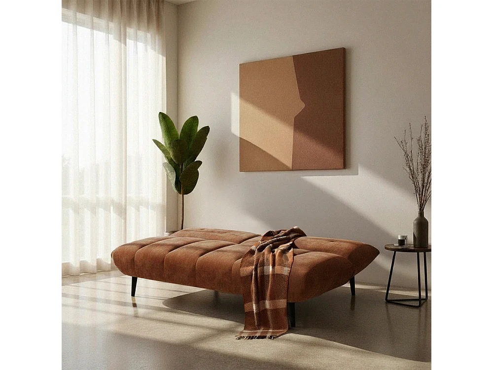 Peco - Canapé convertible 3 places en tissu chenille - Rouille