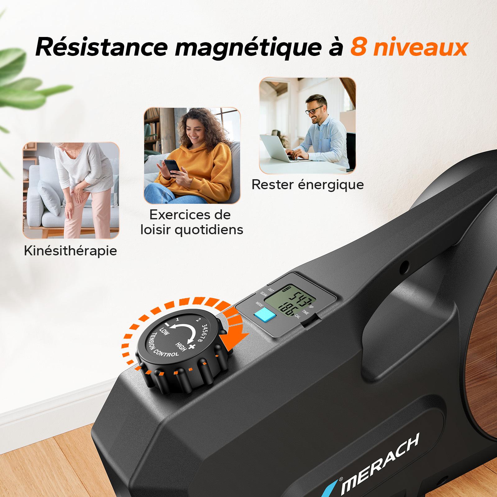 Pédalier d'appartement Merach, 8 niveaux, magnétique manuel, écran LCD, compact noir, ultra-silencieux <20 dB, bureau/maison